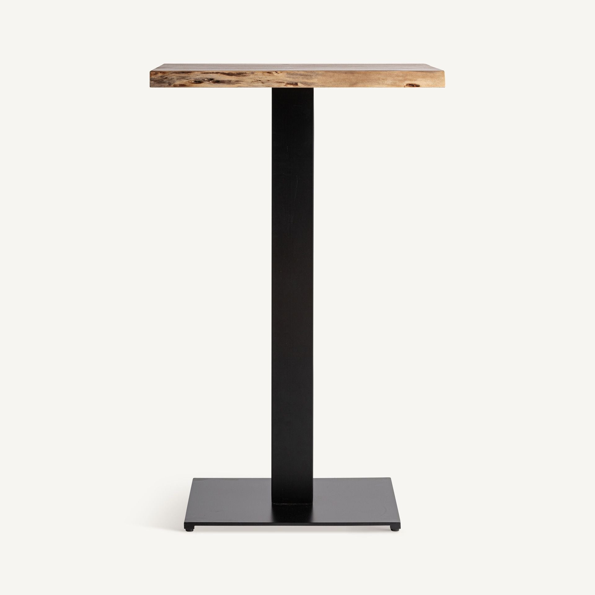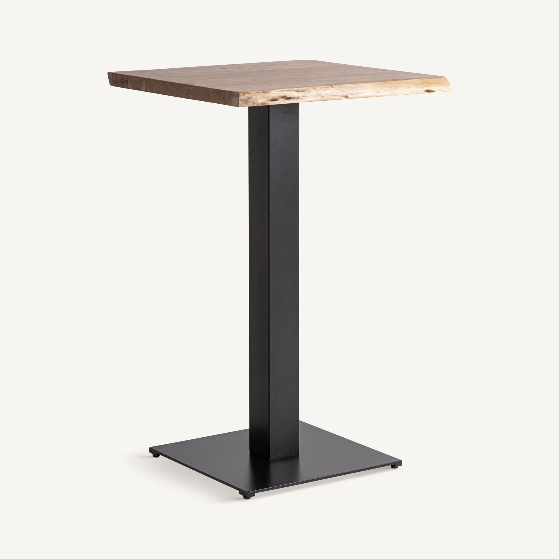 Convierte cualquier espacio en el punto de encuentro perfecto con la mesa bar Club, una pieza que combina diseño contemporáneo y carácter industrial en perfecta armonía. Fabricada con madera maciza de mango, su superficie muestra un tono marrón cálido con acabado natural que resalta la belleza y las vetas auténticas de la madera, aportando un toque artesanal y acogedor.