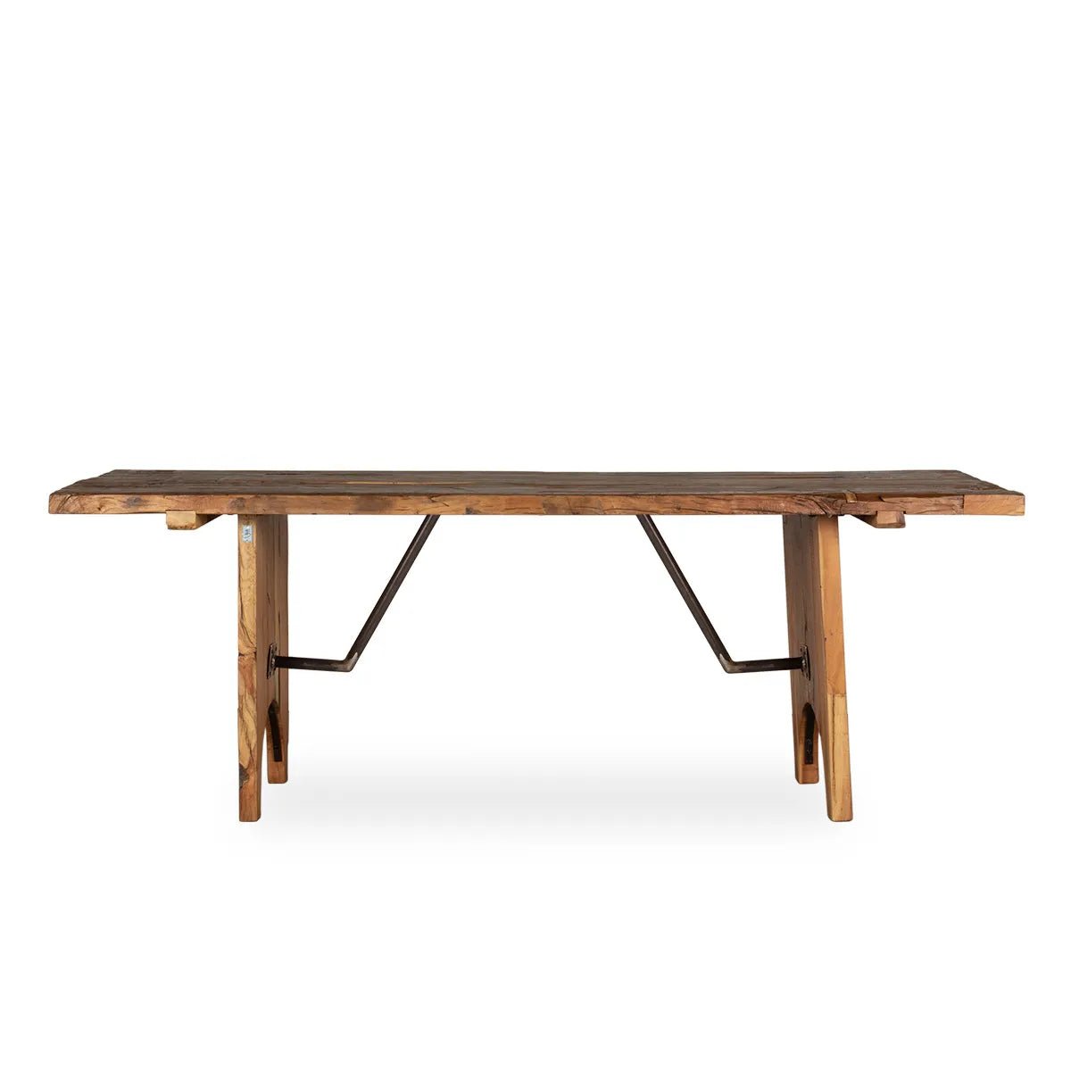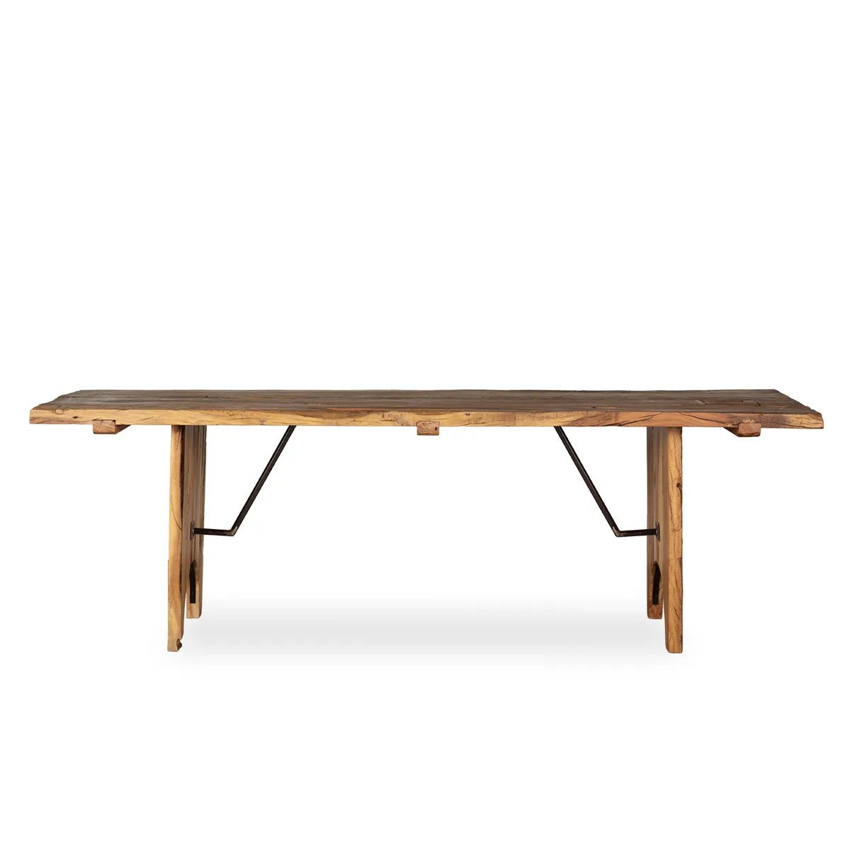 La Mesa de Comedor Odalis destaca por su diseño imponente y carácter artesanal. Fabricada con una estructura de madera maciza, cuenta con dos pies originales que aportan personalidad y estabilidad, además de refuerzos metálicos en la parte inferior que garantizan una gran resistencia y durabilidad.