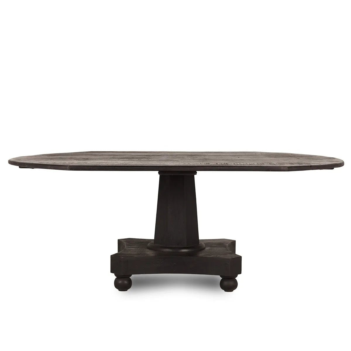Mesa de comedor Oriana. Esta mesa de diseño, elaborada en madera color negro, presenta un formato alargado que permite acomodar a un número considerable de comensales, favoreciendo así la interacción y el disfrute de la experiencia gastronómica. Las esquinas redondeadas aportan un toque estético único y garantizan la seguridad de los clientes en un entorno donde la movilidad es constante.