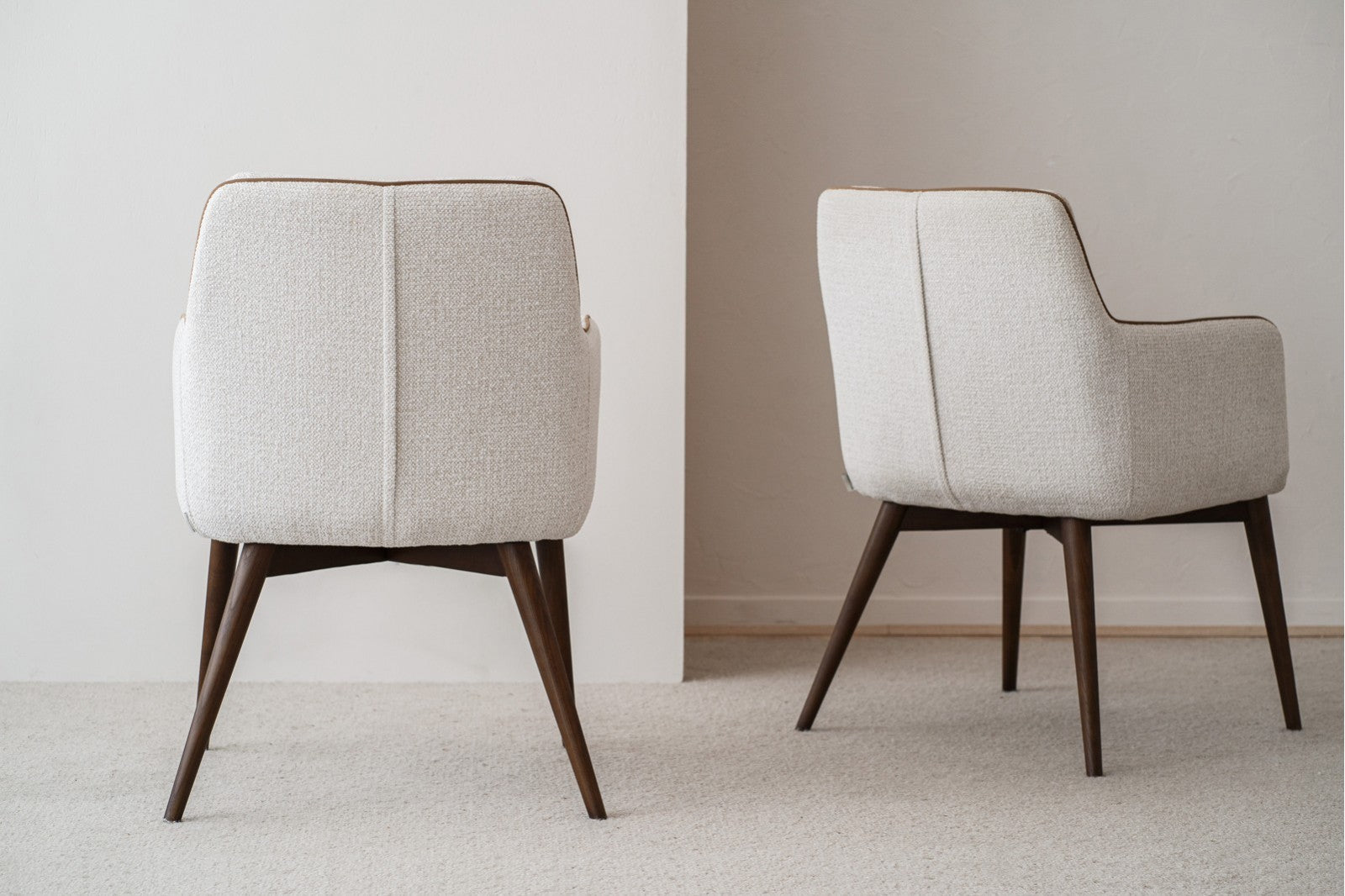 El set de 2 sillas Olivia Nogal en tapicería de color marfil y patas de color nogal combina elegancia, confort y diseño envolvente, convirtiéndose en una pieza clave para comedores modernos y acogedores. Tapizadas en un tejido con textura en tonos marfil y gris, estas sillas transmiten una sensación de luminosidad y calidez, perfecta para realzar cualquier espacio.