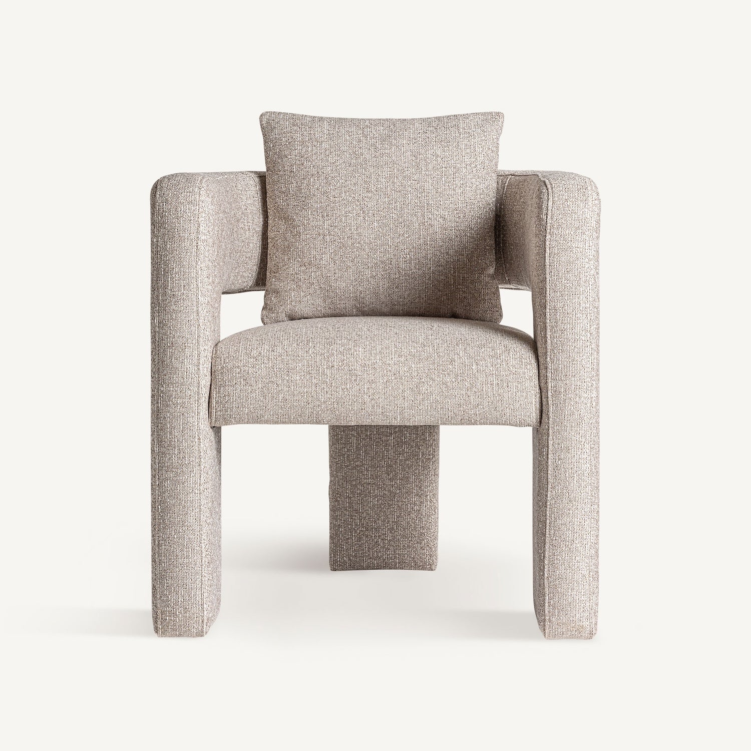 Sillón de estilo art deco, fabricado en madera de fresno en color beige, combinado con poliéster. Producto desenfundable.
