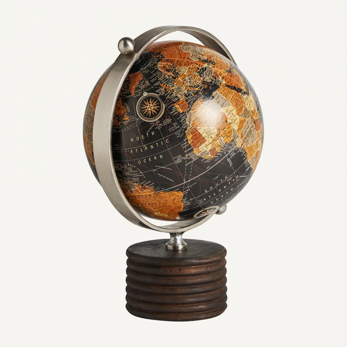 El globo terráqueo Atlas Noir es una pieza decorativa con alma viajera y carácter clásico. Su elegante diseño en color negro, junto con la base de madera de mango tallada a mano, aporta un aire vintage y sofisticado a cualquier estancia. Perfecto para escritorios, salones o bibliotecas, este globo no solo es un elemento funcional, sino también un objeto decorativo con mucha personalidad. Una invitación sutil a soñar con nuevos destinos desde casa.