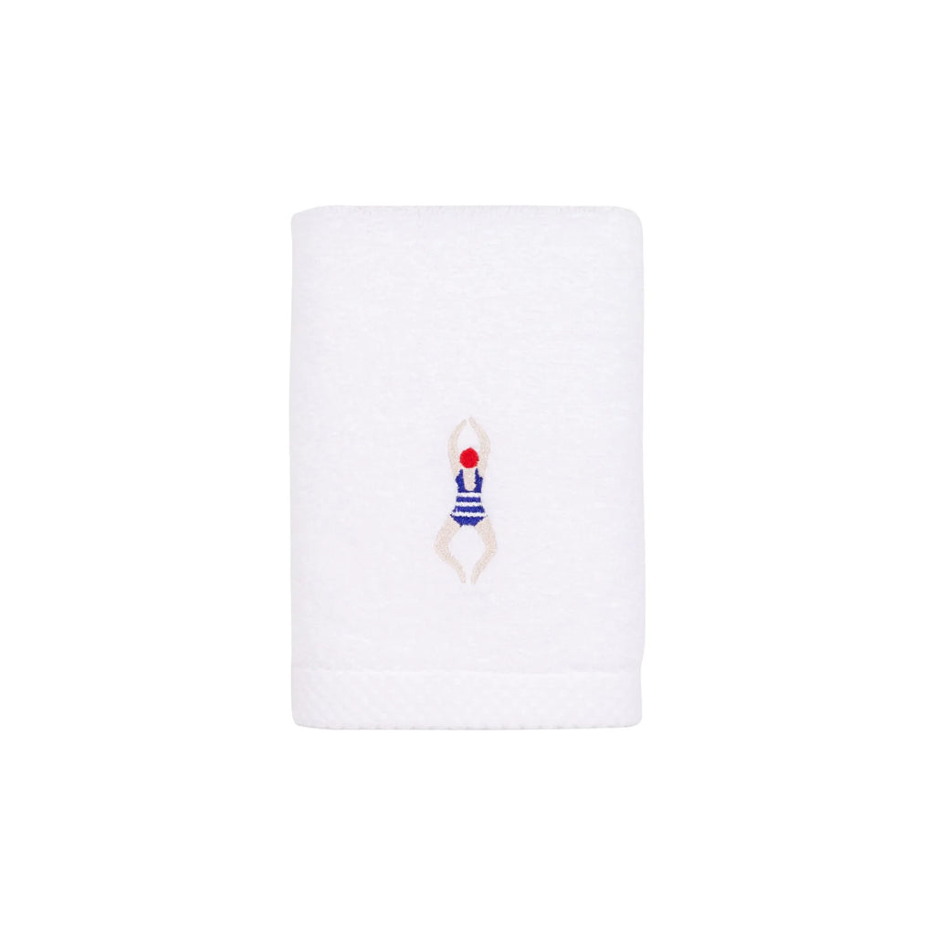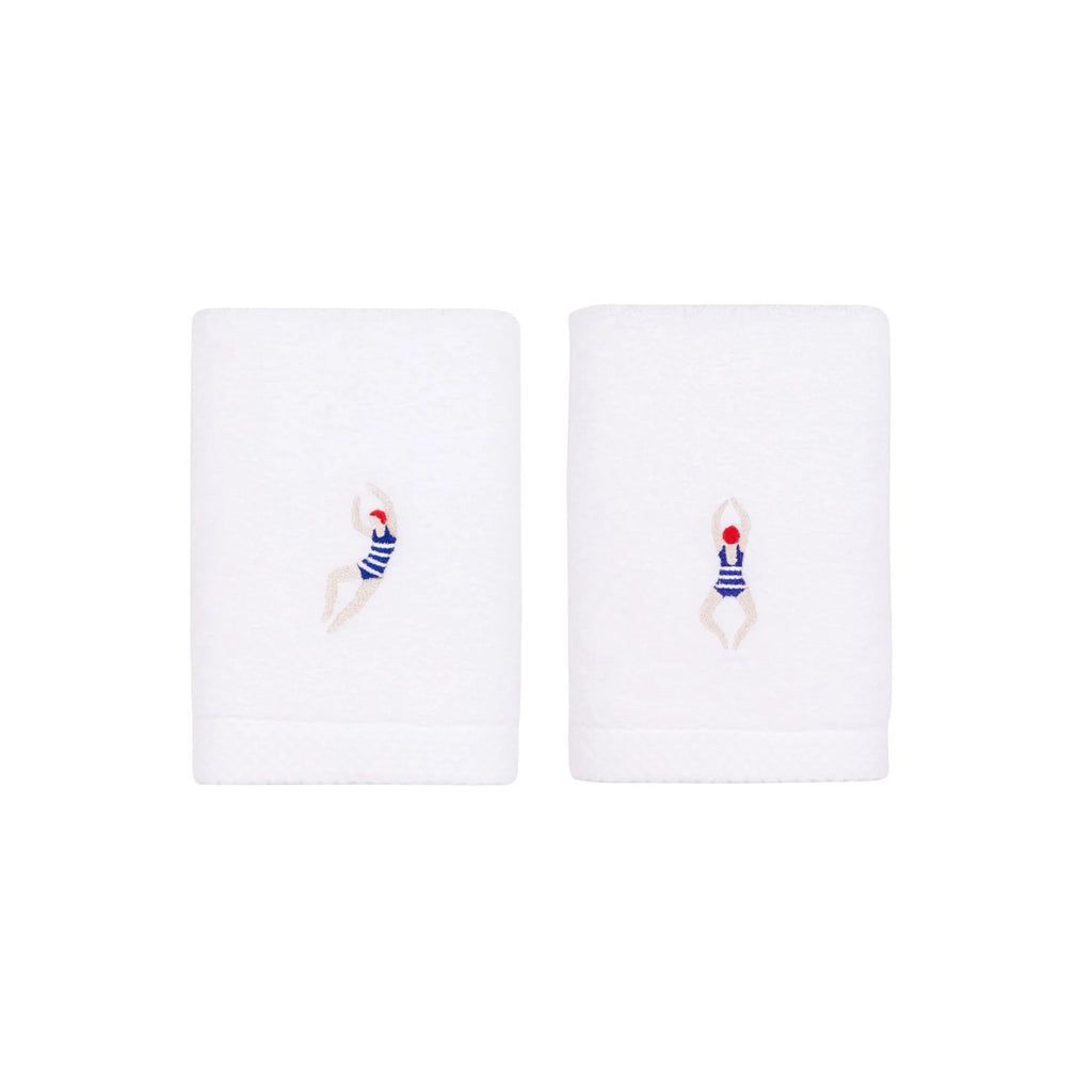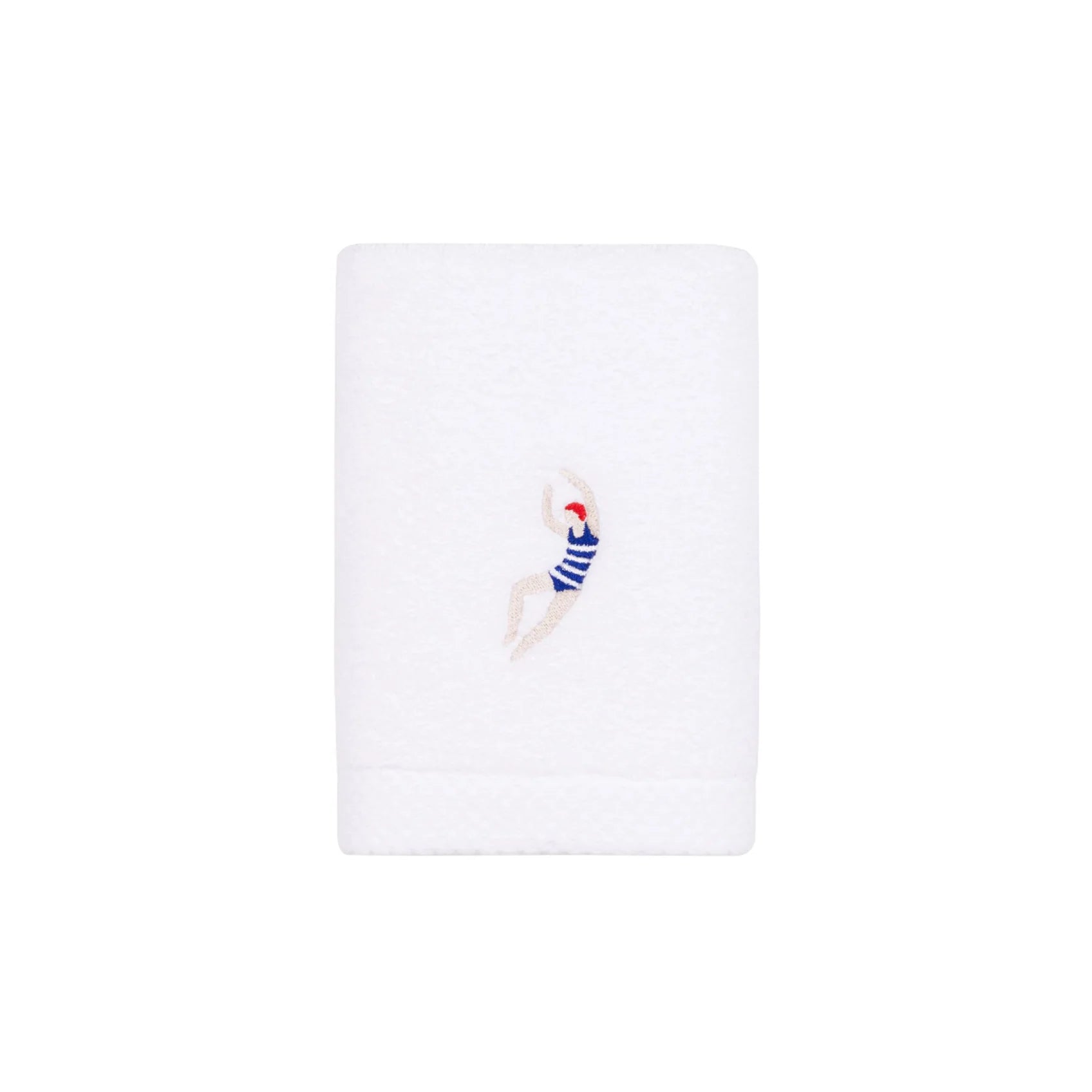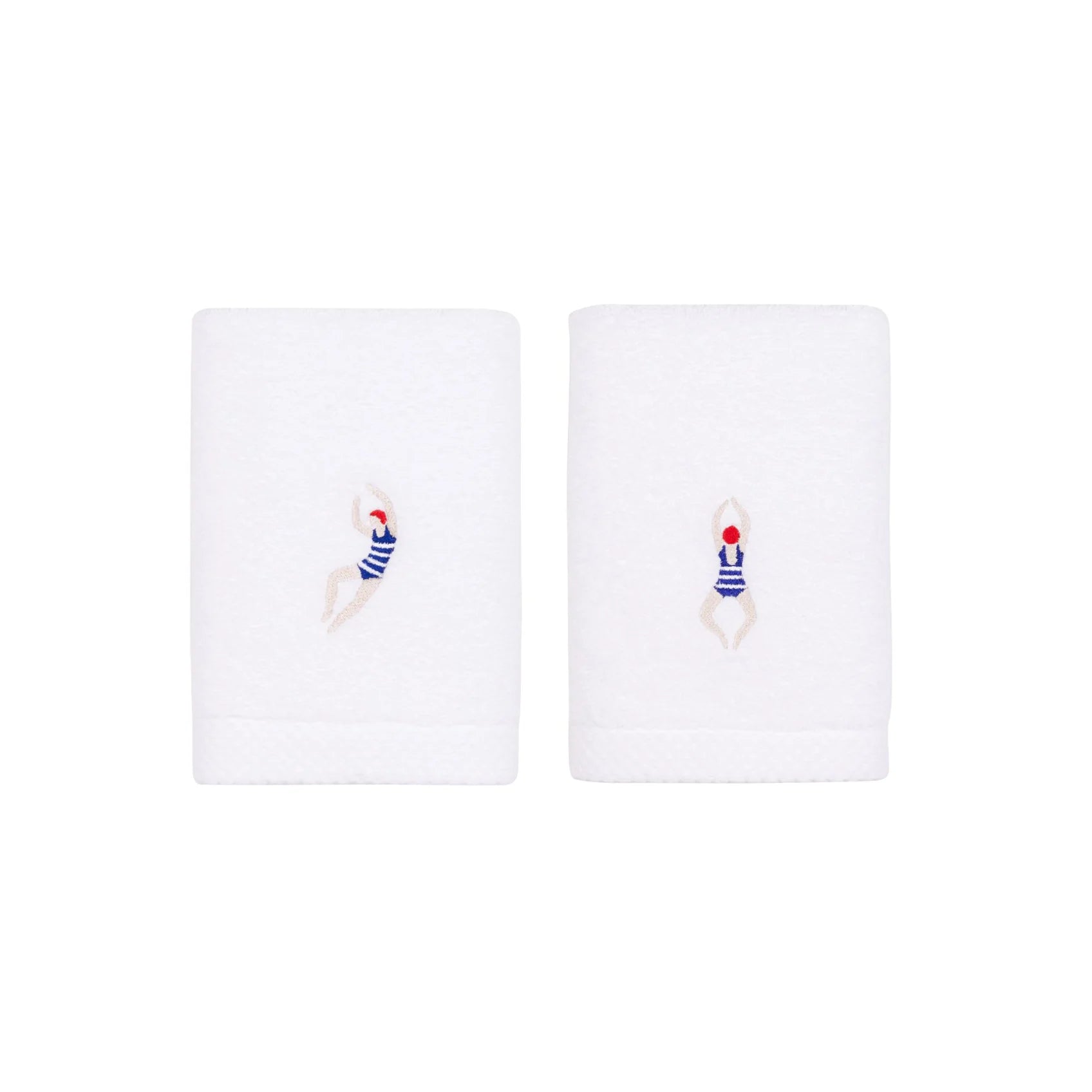Este set de toallas con bordado de nadadores aporta un toque de personalidad y encanto retro a cualquier baño. Su diseño de inspiración vintage, creado en edición limitada, destaca por sus figuras de nadadores que añaden un aire divertido, elegante y único.