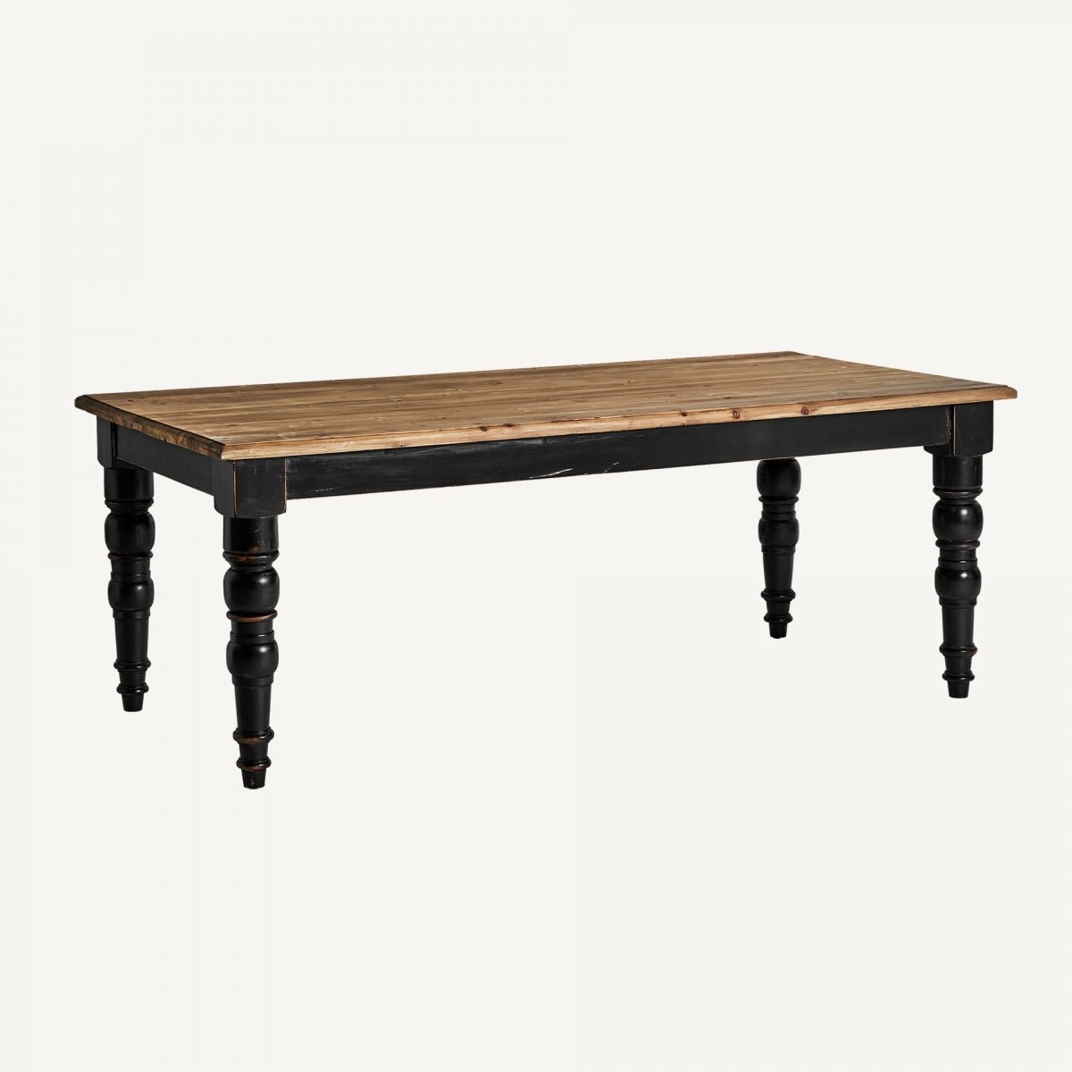 Mesa de comedor Camacho fabricada en madera de olmo en color natural y negro de estilo provenzal. Disponible en diferentes tamaños. Producto desmontable.
