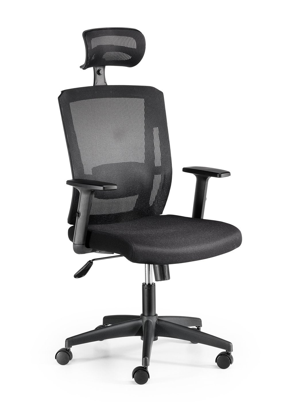 El sillón de dirección Euromof Sofía está diseñado para ofrecer ergonomía, funcionalidad y estilo en el entorno de trabajo diario. Su respaldo alto en malla efecto tela, junto con el soporte lumbar y el cabecero integrados, proporcionan un apoyo firme y confortable para largas jornadas.