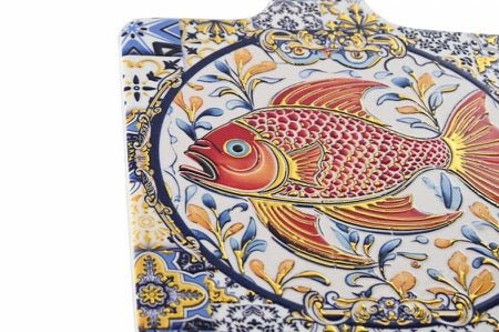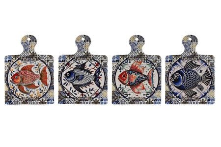 Precioso salvamantel fabricado en dolomite con dibujos de peces en multicolor.