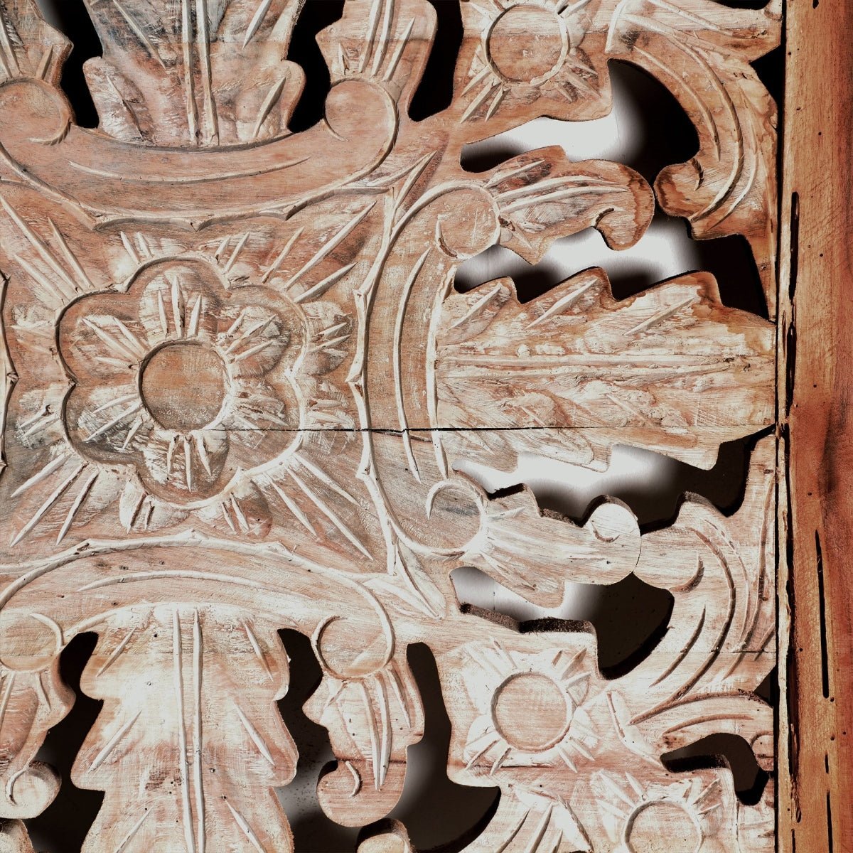 Convierte tus paredes en verdaderas obras de arte con el panel decorativo Kesta, una pieza de inspiración étnica que fusiona la belleza de la tradición artesanal con un diseño atemporal y sofisticado. Tallado con maestría en madera tropical, este panel ofrece una estructura robusta y duradera, mientras que su acabado en color blanco con efecto envejecido y matices naturales resalta cada detalle del tallado, aportando profundidad, textura y autenticidad.