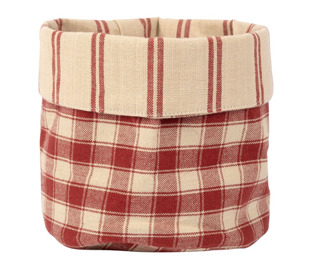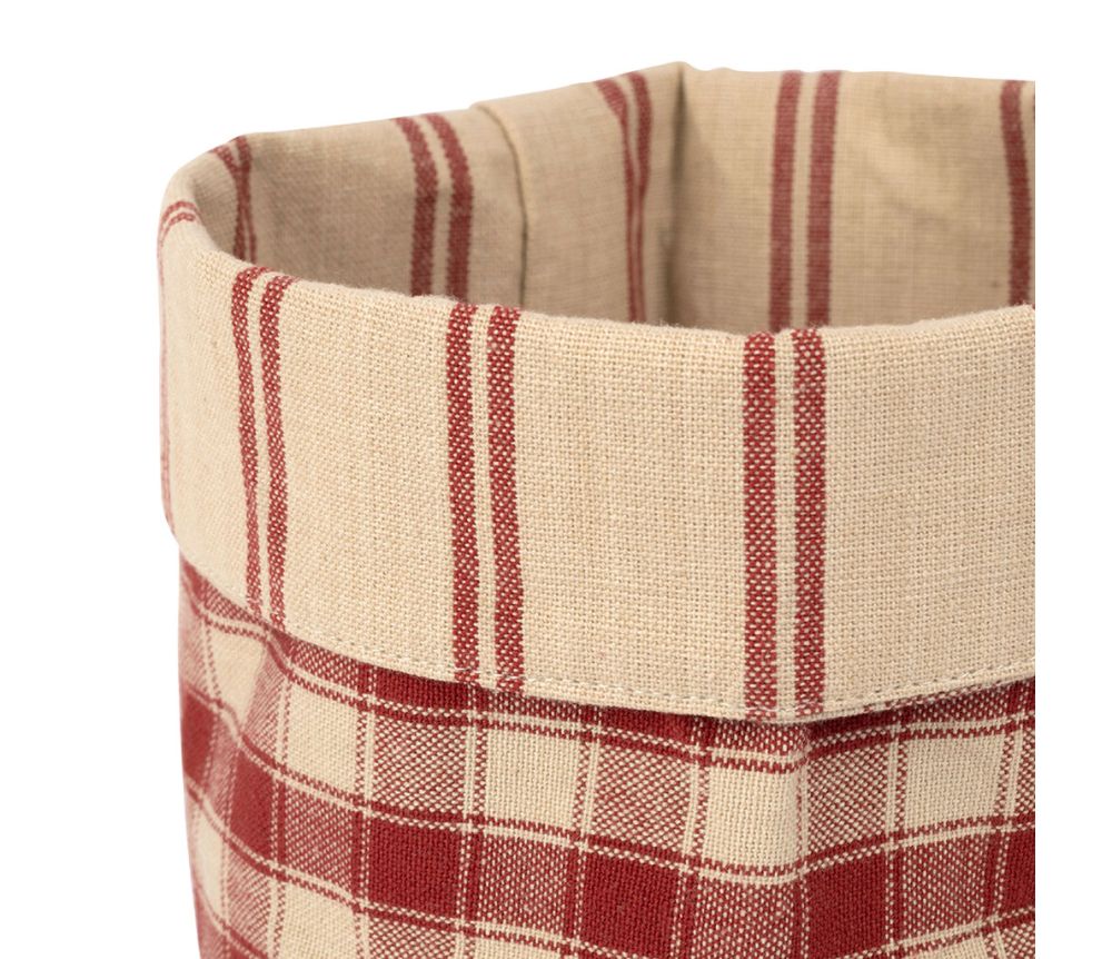 Preciosa panera de algodón con cuadros en color rojo y crudo.