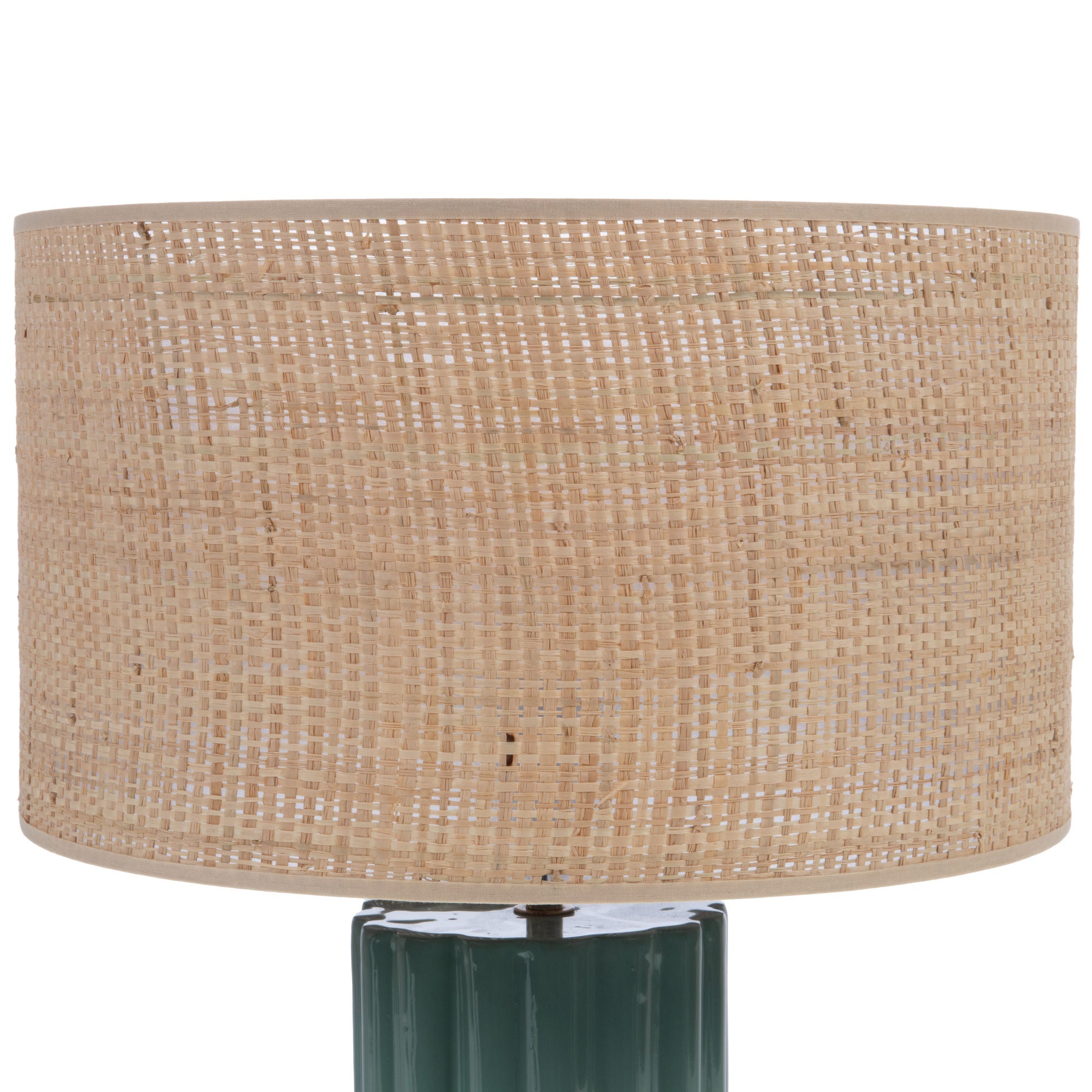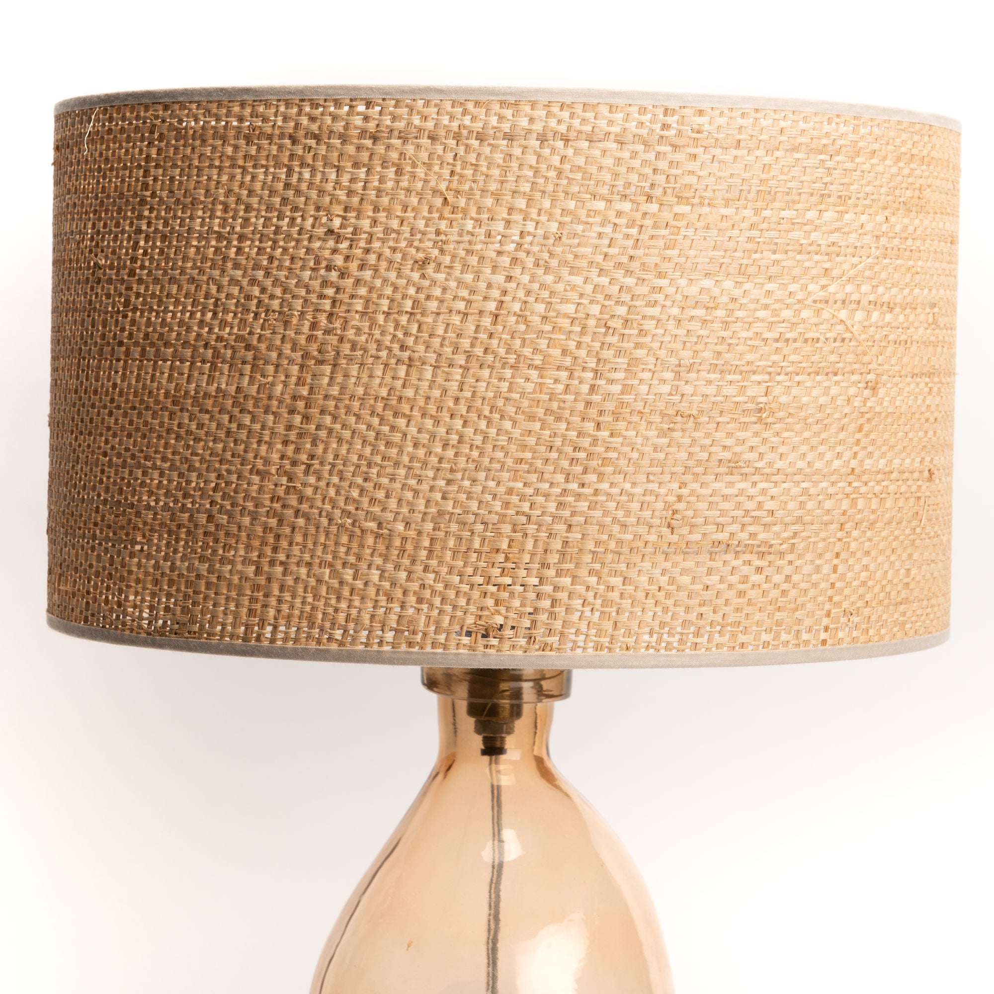 Preciosa pantalla fabricada en metal y rejilla color natural. Disponible en dos medidas.