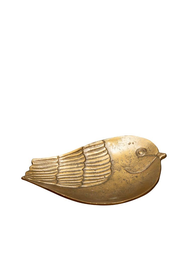 Precioso plato decorativo en forma de pájaro fabricado en hierro dorado.