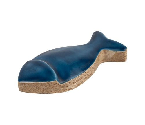 Organiza tu mesa con estilo gracias a este original set de 6 reposapalillos en forma de peces, elaborados en resistente madera de acacia y acabados en un elegante color azul.