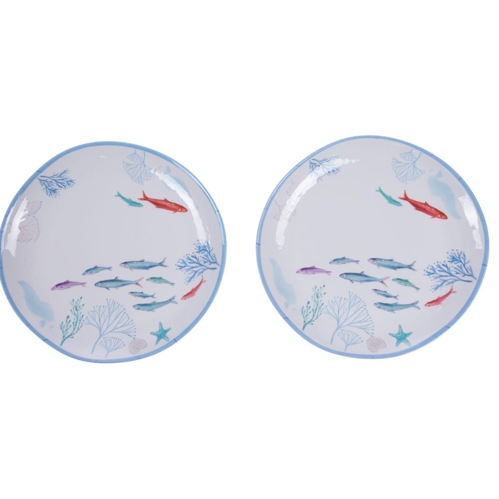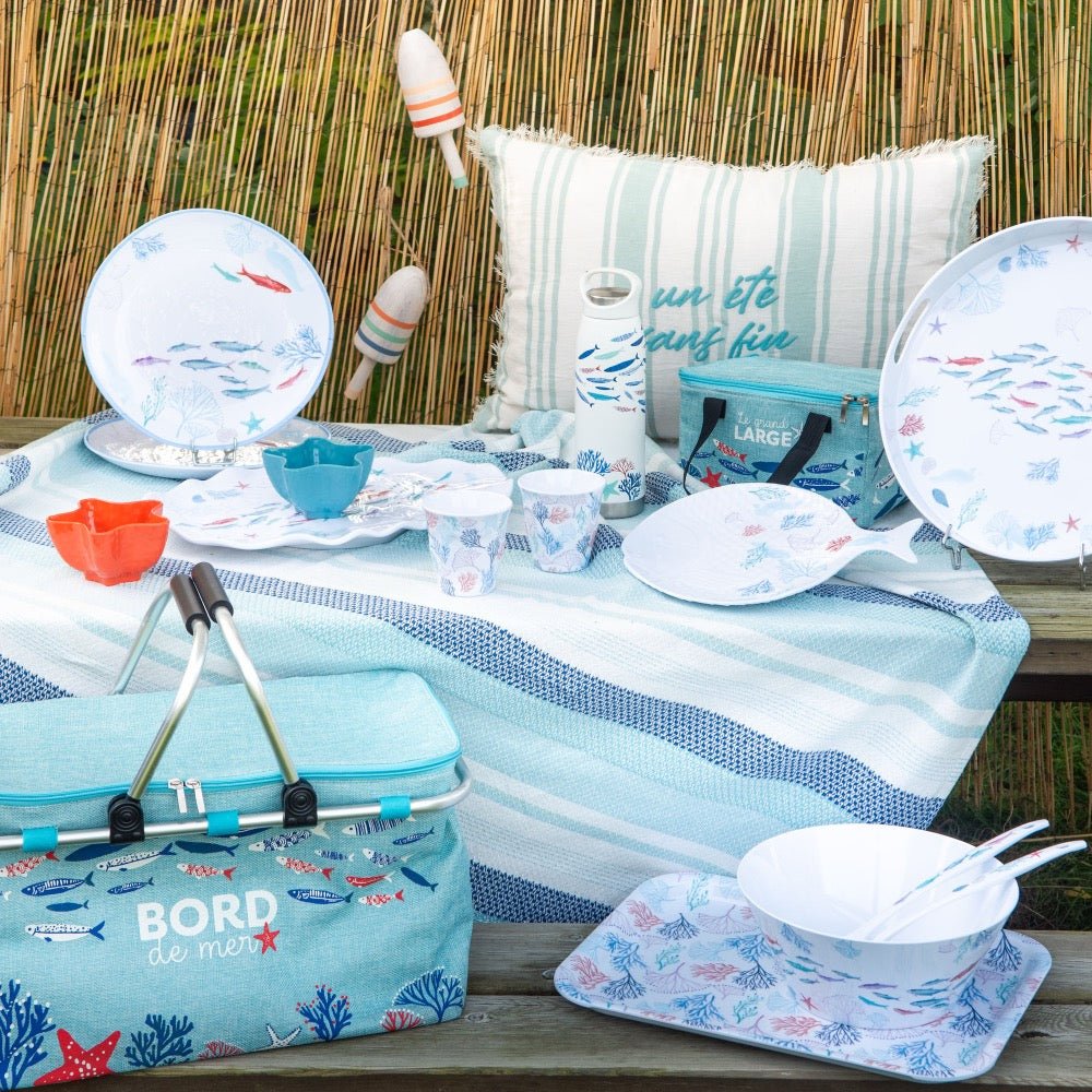 Llena tu mesa de color y frescura con la vajilla Marea, fabricada en melamina resistente y decorada con alegres motivos marinos multicolor. Práctica, ligera y duradera, es ideal para comidas al aire libre, terrazas o escapadas junto al mar. Su diseño inspirado en el océano convierte cada comida en una experiencia divertida y veraniega, sin renunciar al estilo.