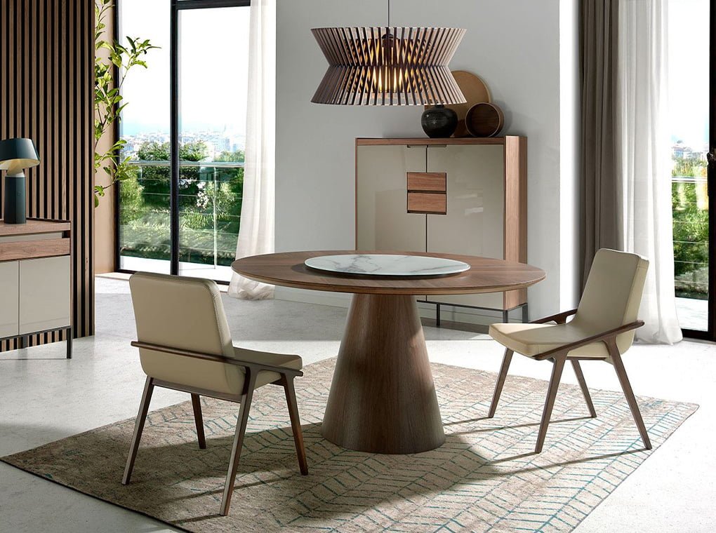 Silla comedor perfecta para aportar calidez y elegancia en cualquier estancia, tapizada en polipiel con estructura y patas en madera maciza color nogal .