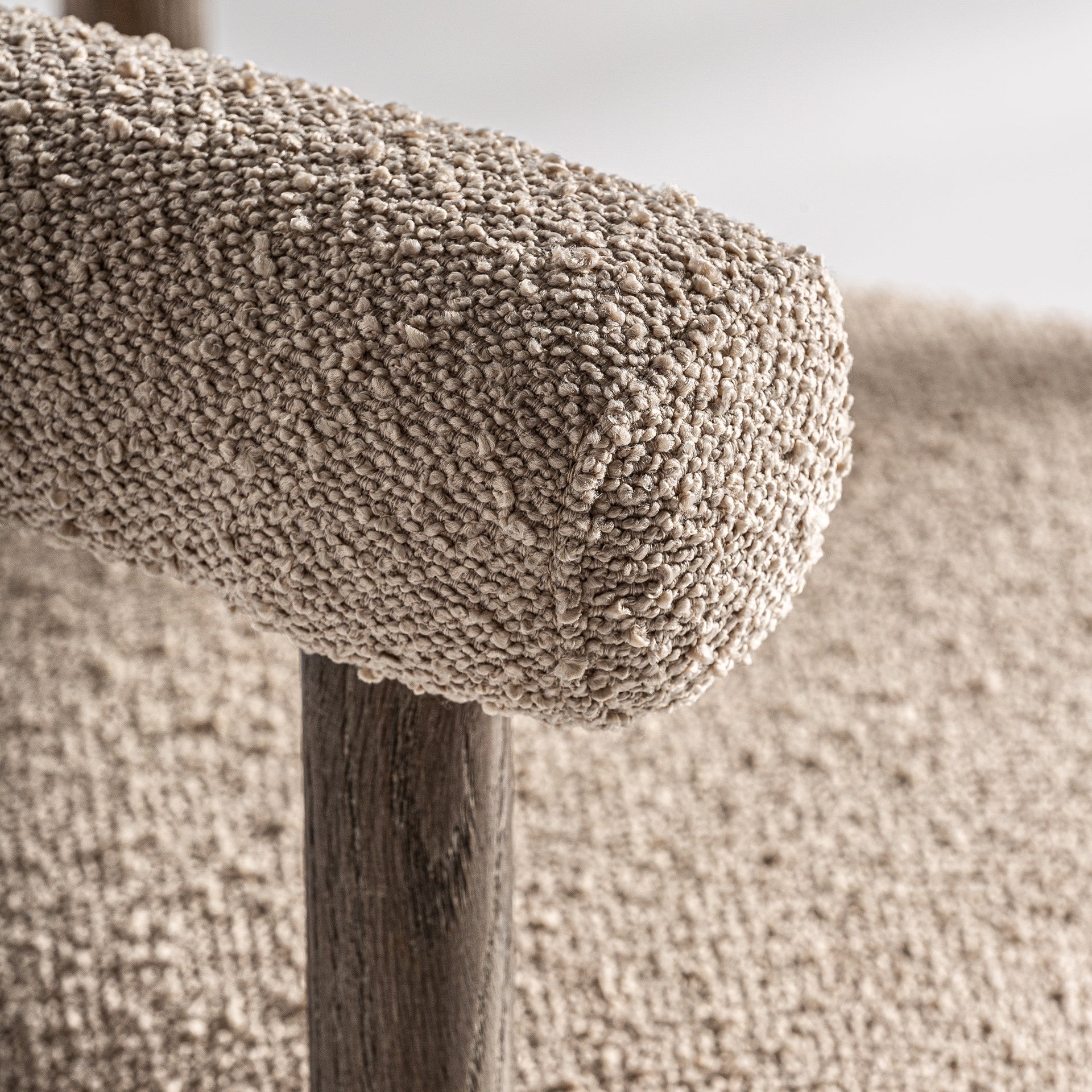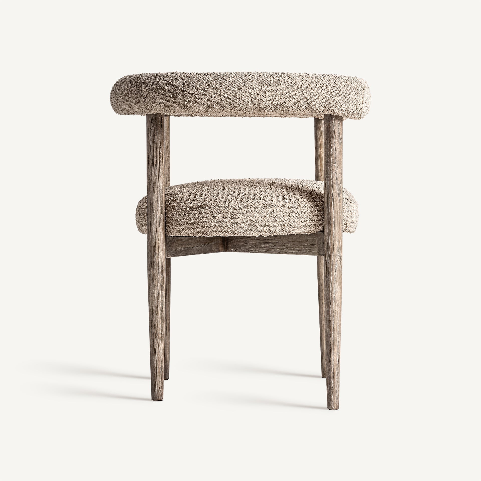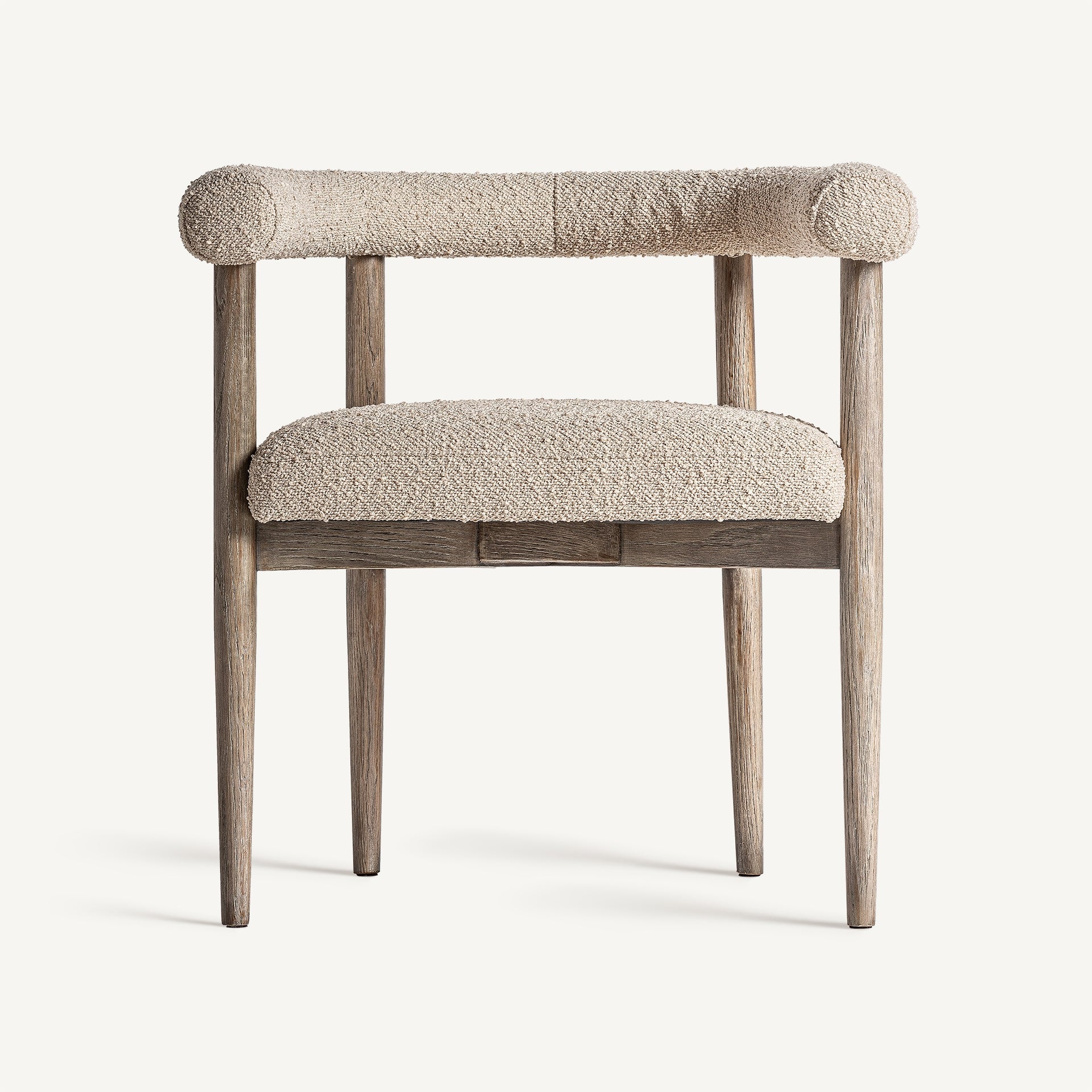 Silla fabricada en madera de fresno color natural con asiento acolchado que garantiza máxima comodidad y tapizada en poliéster beige.