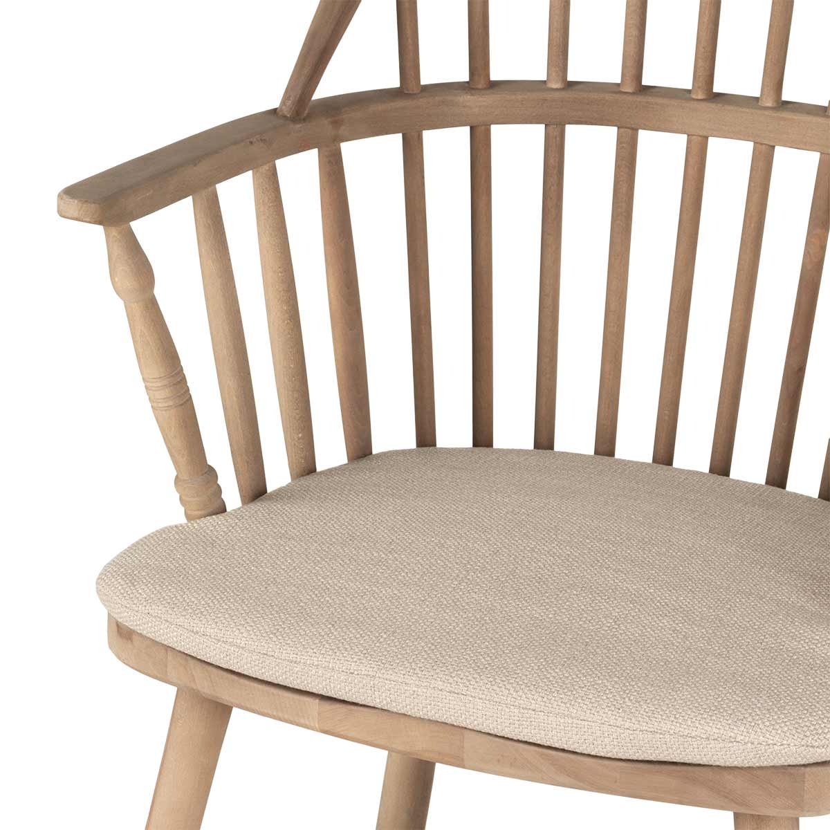 Esta silla de estilo nórdico combina simplicidad y elegancia con su estructura en madera de olmo natural, que aporta calidez y resistencia. El cojín en beige ofrece comodidad y suavidad, creando un asiento acogedor que invita a permanecer sentado.