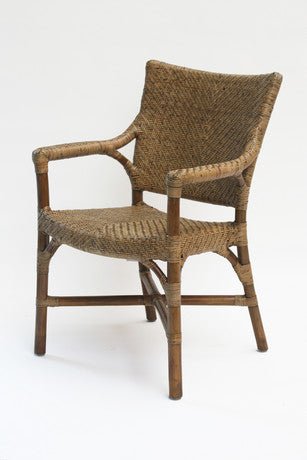 Silla con brazos Benaocaz fabricada en ratán de color marrón.