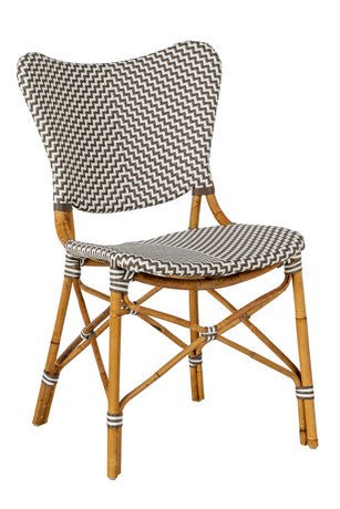 Silla Chipiona fabricada en ratán natural y tejido sintético en color blanco y marrón.