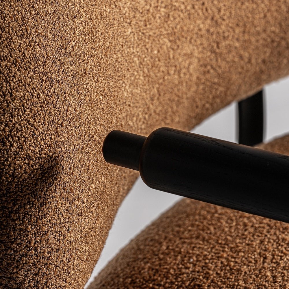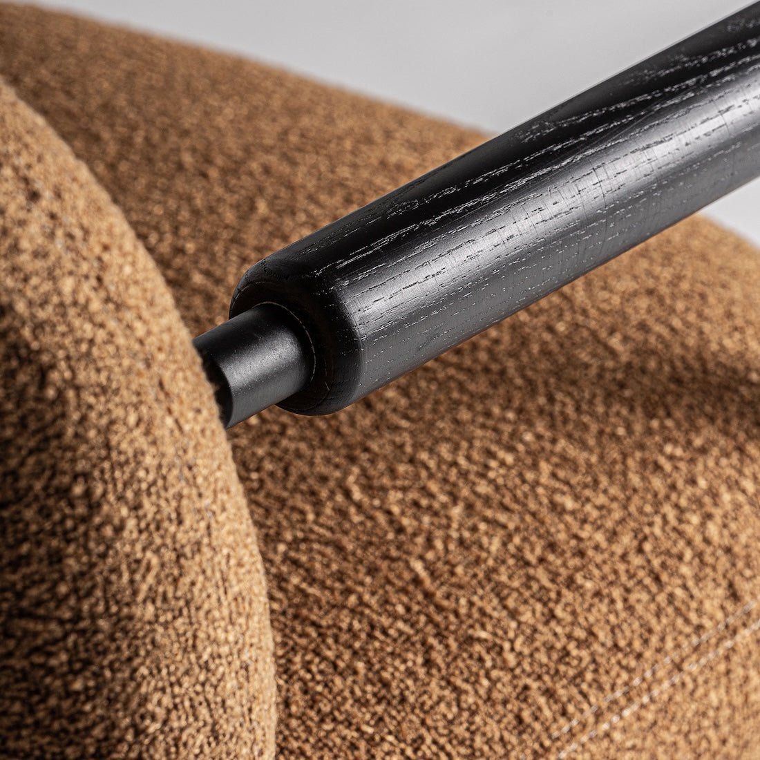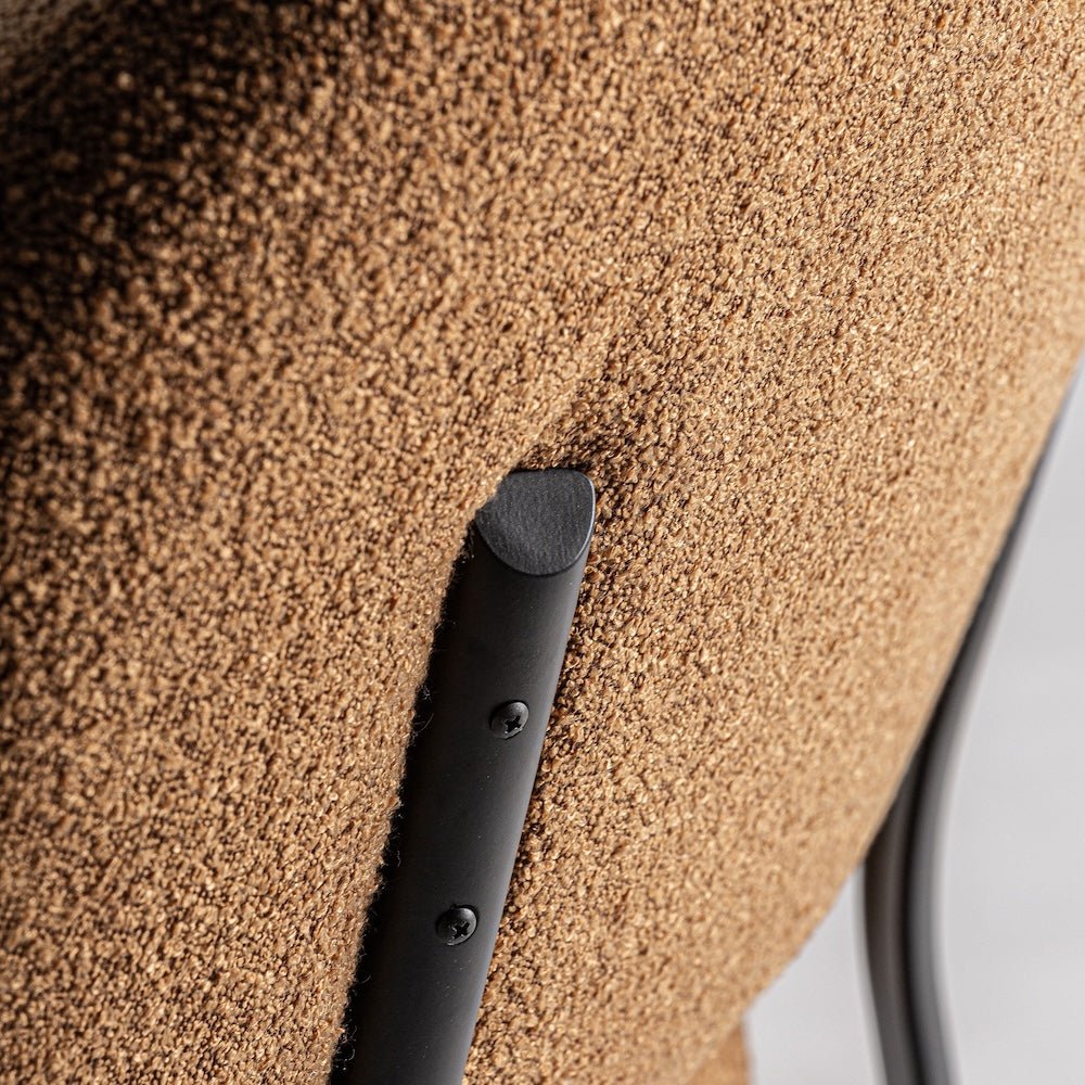 Silla de estilo contemporáneo, fabricado en madera de pino en color negro, combinado con poliéster en color ocre con acabado jaspeado y metal en color negro.