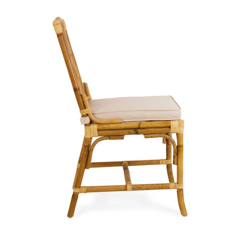 Silla fabricada en caña natural incluye cojín de 5 cm. Recomendado para uso interior y exterior cubierto.