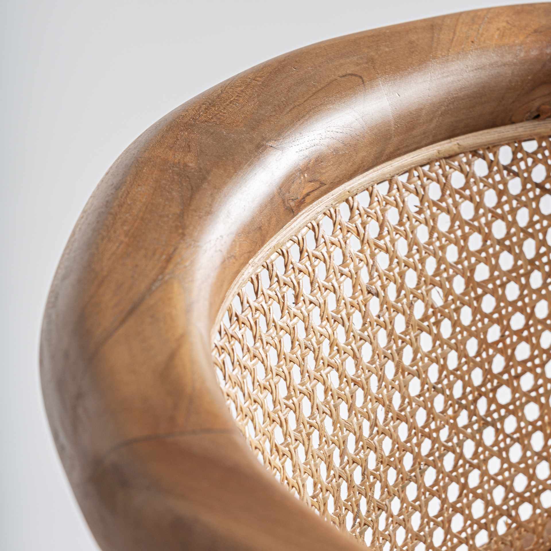 La silla Raíz es una pieza única que encarna la esencia del estilo boho natural, fusionando autenticidad, calidez y diseño artesanal. Fabricada en madera de teca de tono marrón claro, esta silla destaca por su textura orgánica y la belleza de sus vetas naturales, que hacen de cada ejemplar una obra irrepetible.