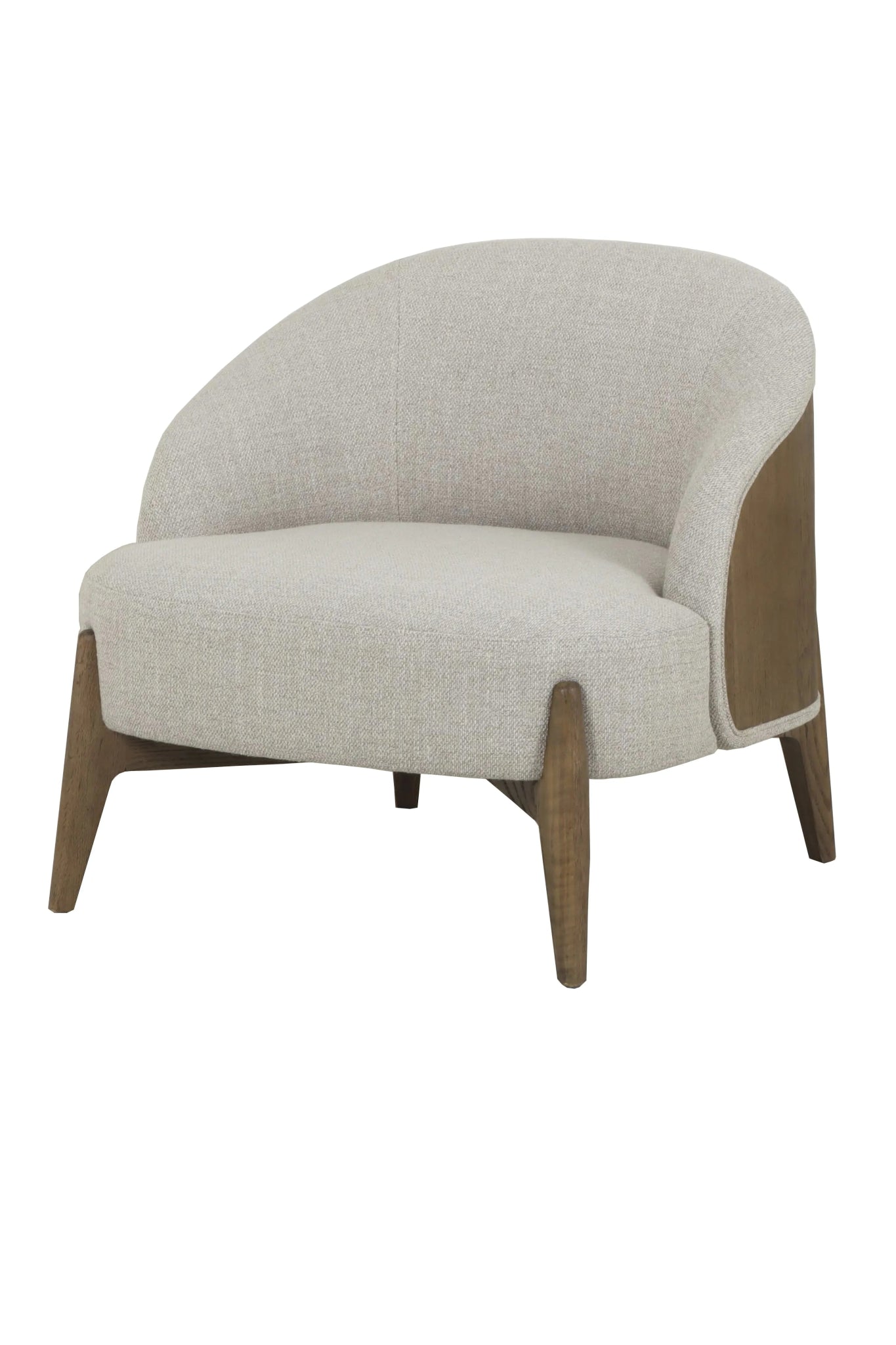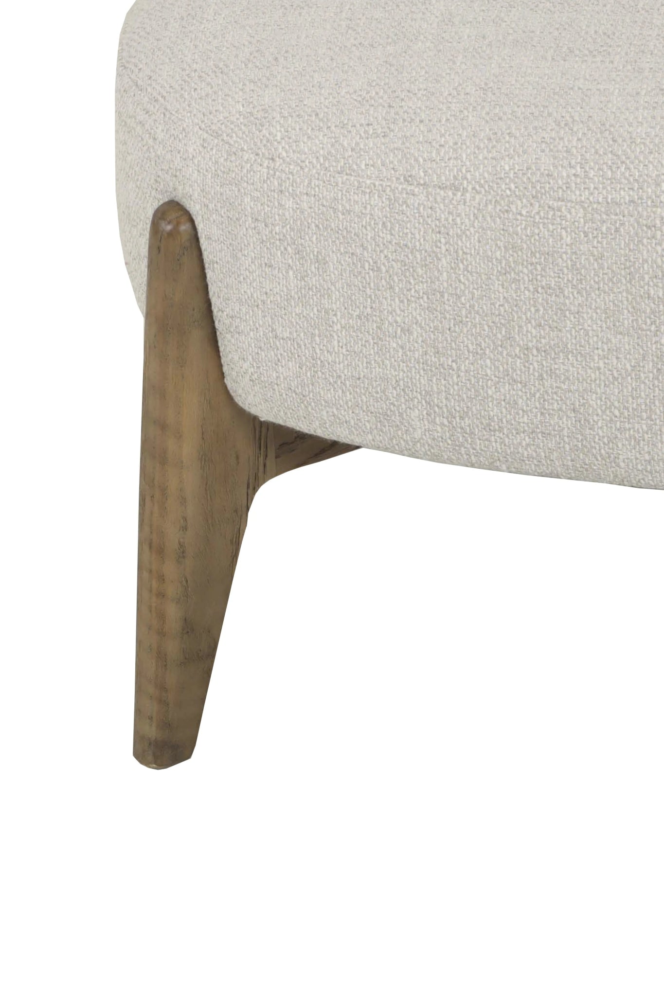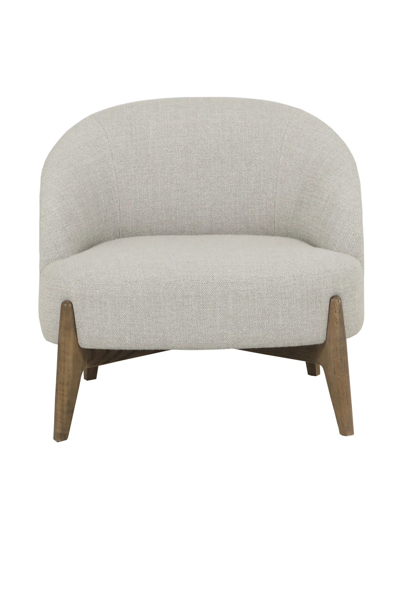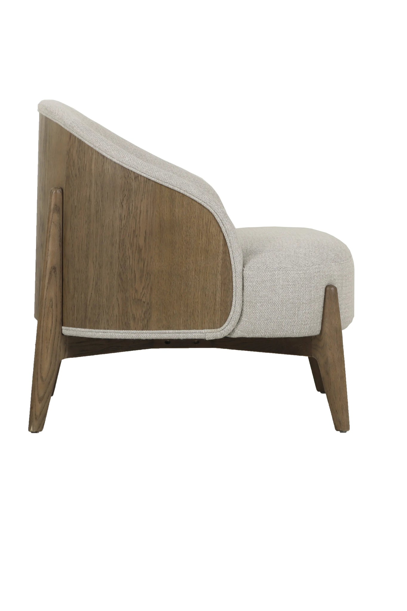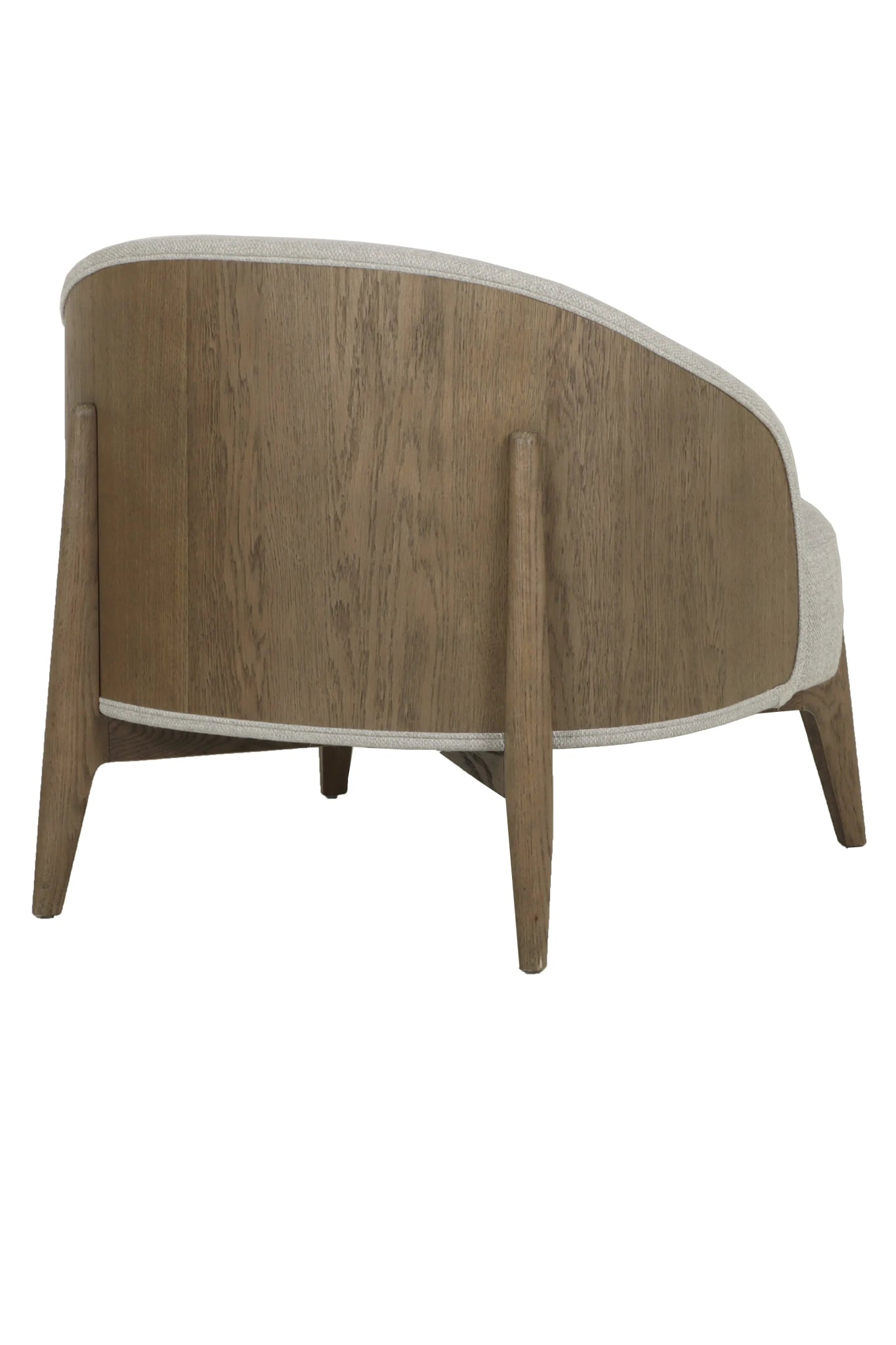 Butaca fabricada en madera de roble antiguo y tapizada en 85% poliéster, 10% acrílico y 5% algodón color gris.