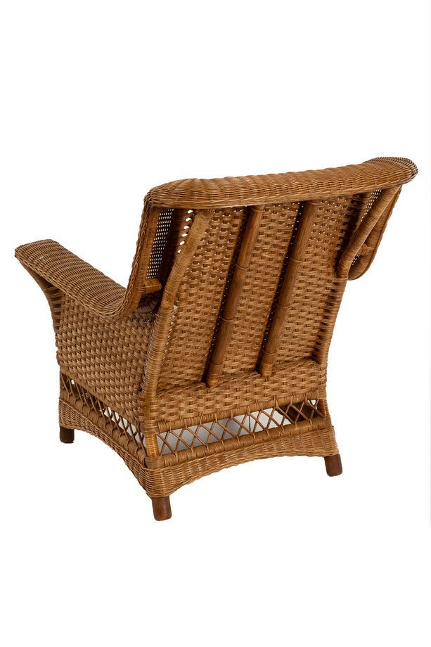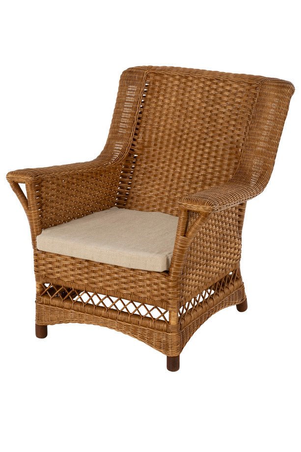 Butaca fabricada en ratán de color natural, un material ligero y resistente que aporta un estilo fresco y atemporal. Su diseño combina la calidez de lo artesanal con un aire elegante y relajado, ideal para crear ambientes acogedores tanto en interiores como en terrazas cubiertas. Versátil y decorativa, esta pieza añade un toque natural y sofisticado al hogar, invitando al descanso y al confort.