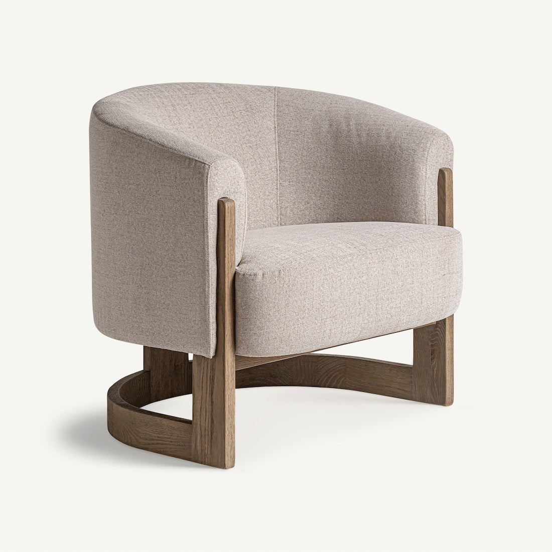 Sillón de estilo colonial, fabricado en madera de fresno en color beige, combinado con poliéster.