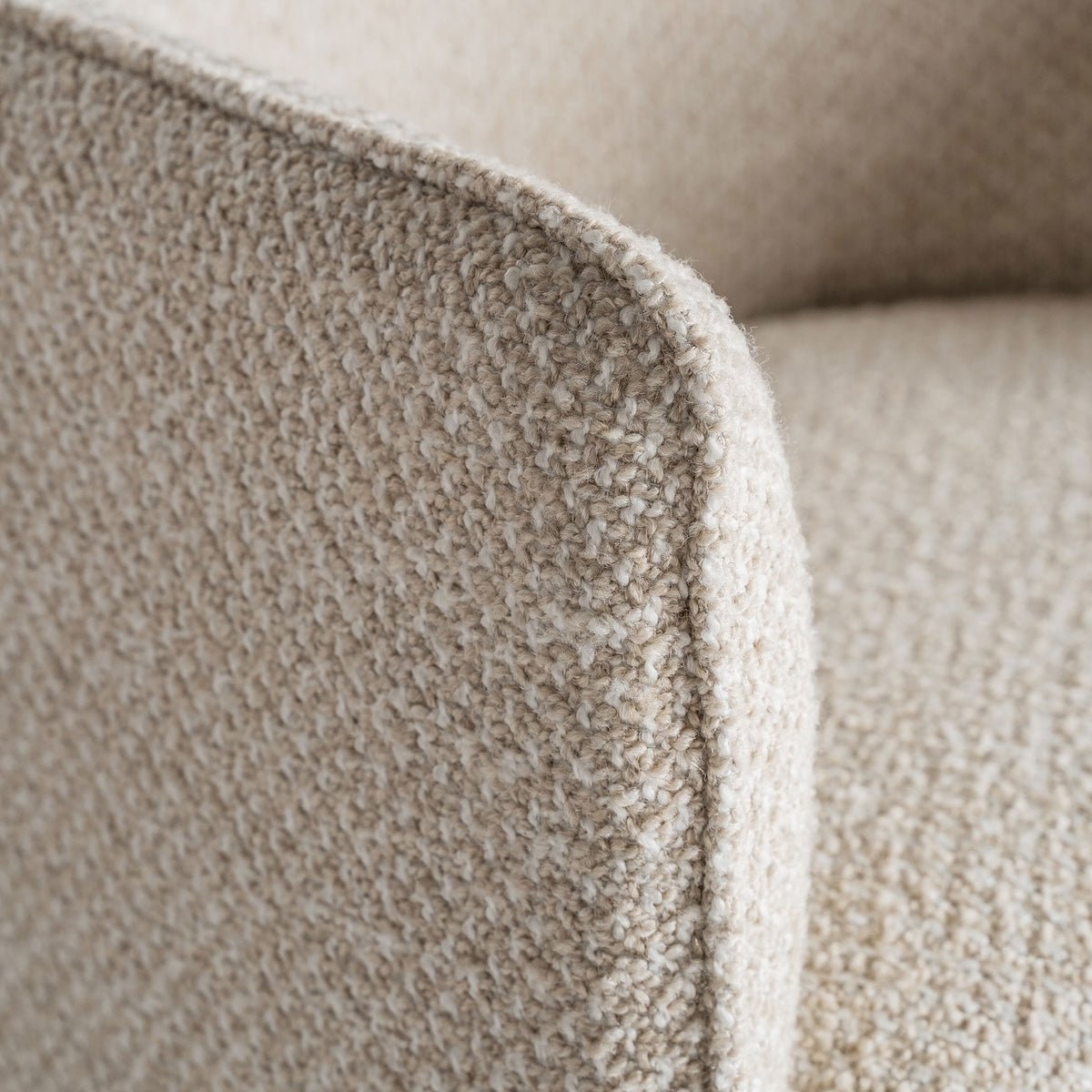 Sillón de estilo art deco, fabricado en poliéster en color beige, combinado con hierro.