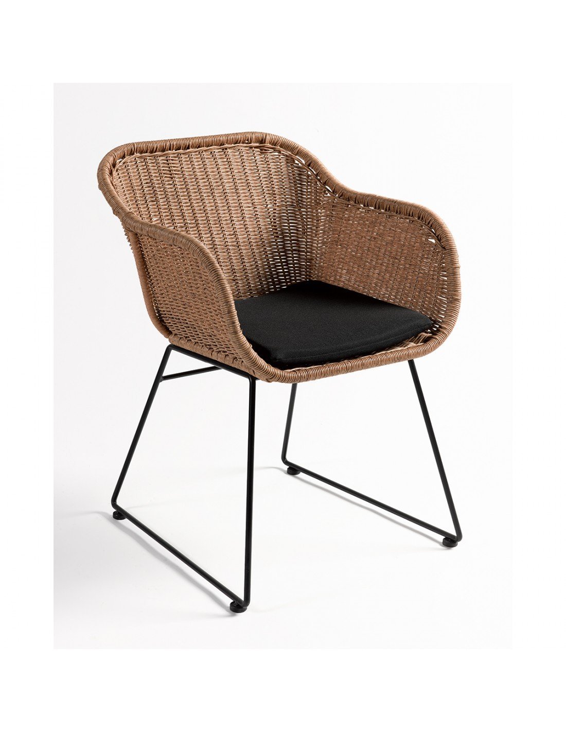 Sillón de ratán sintético en color natural y patas metálicas de color negro. Ideal para la decoración de tu jardín o terraza.