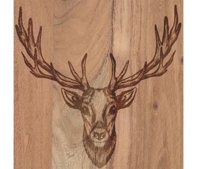 Funcionalidad y carácter en una sola pieza. “Noble Madera” es una tabla de cortar fabricada en resistente y elegante madera de acacia, reconocida por su durabilidad y vetas únicas. Su diseño se realza con un delicado grabado de una cabeza de ciervo, símbolo de fuerza y elegancia natural, que la convierte en mucho más que un utensilio: una pieza decorativa con personalidad. Ideal tanto para la preparación como para la presentación de alimentos, esta tabla es perfecta para cocinas con estilo rústico, moderno o natural.