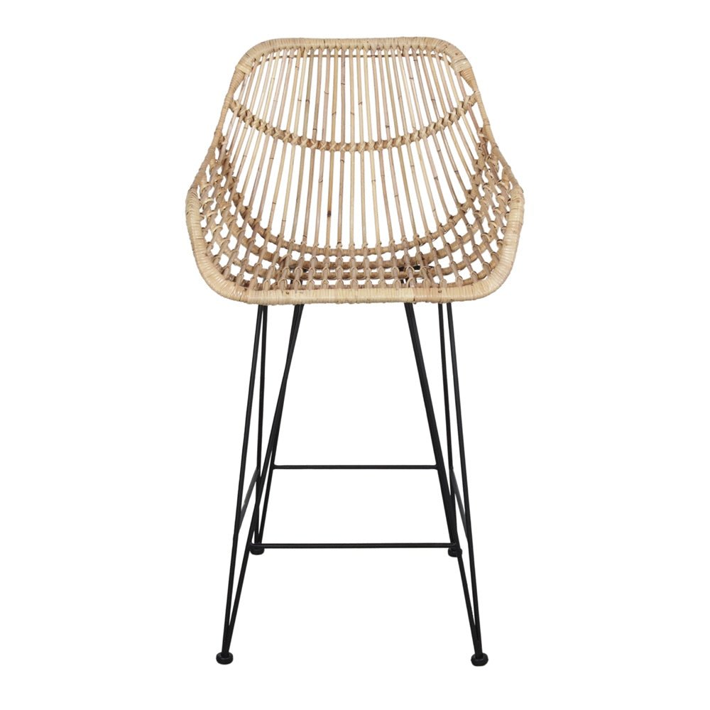 Taburete de estilo nórdico con estructura tubular de acero acabada en pintura, asiento y respaldo de ratán natural. No válido para exterior.
