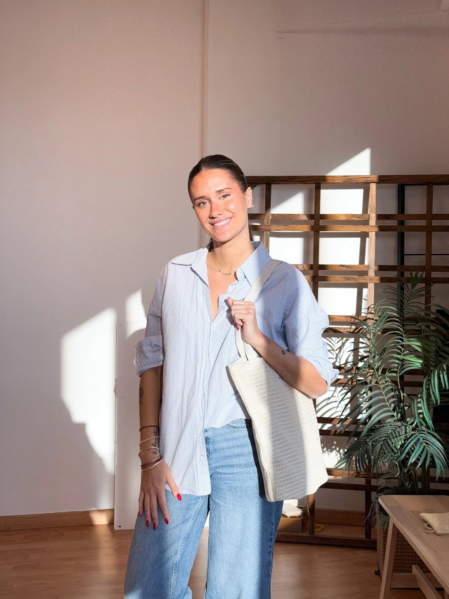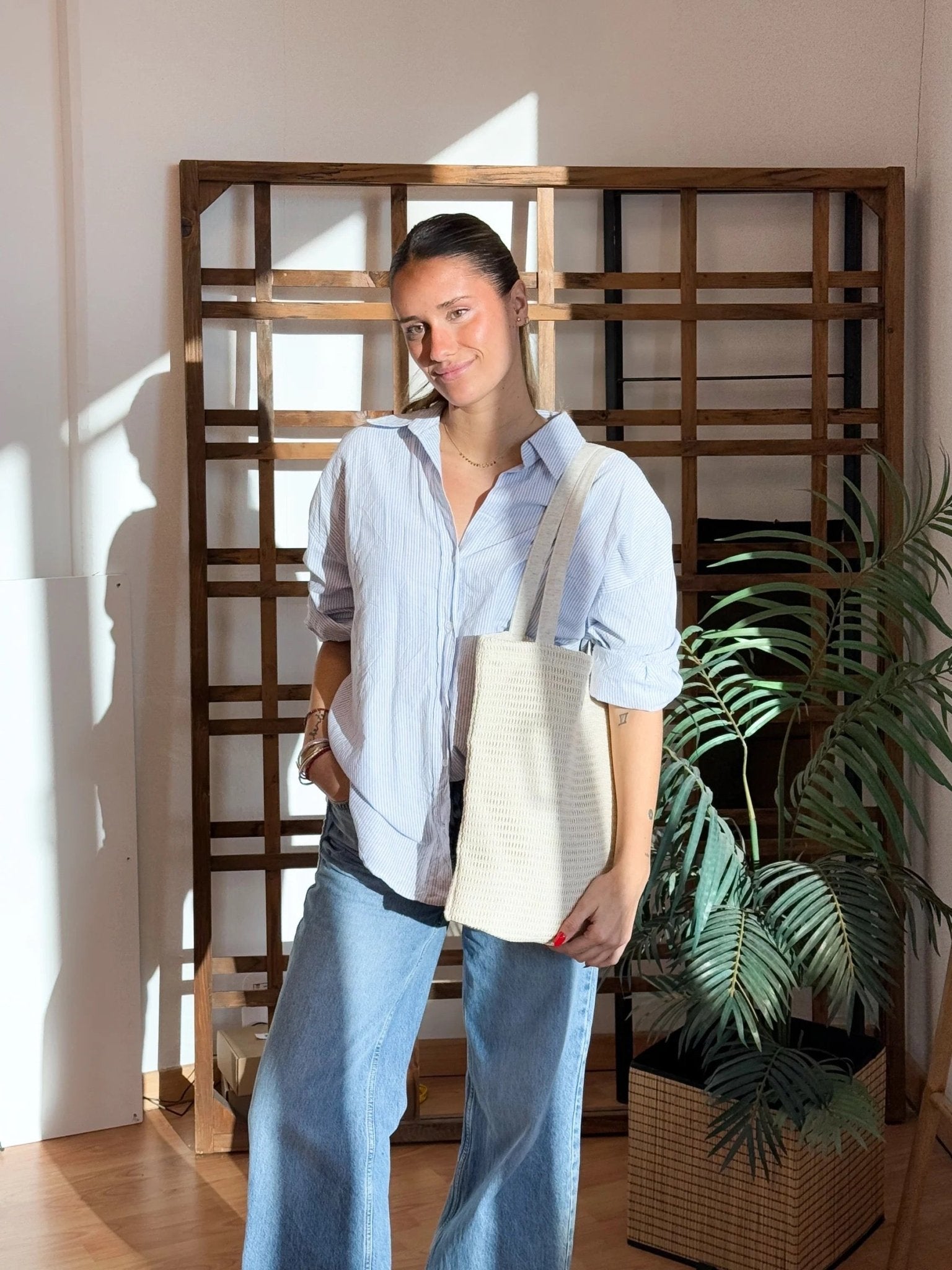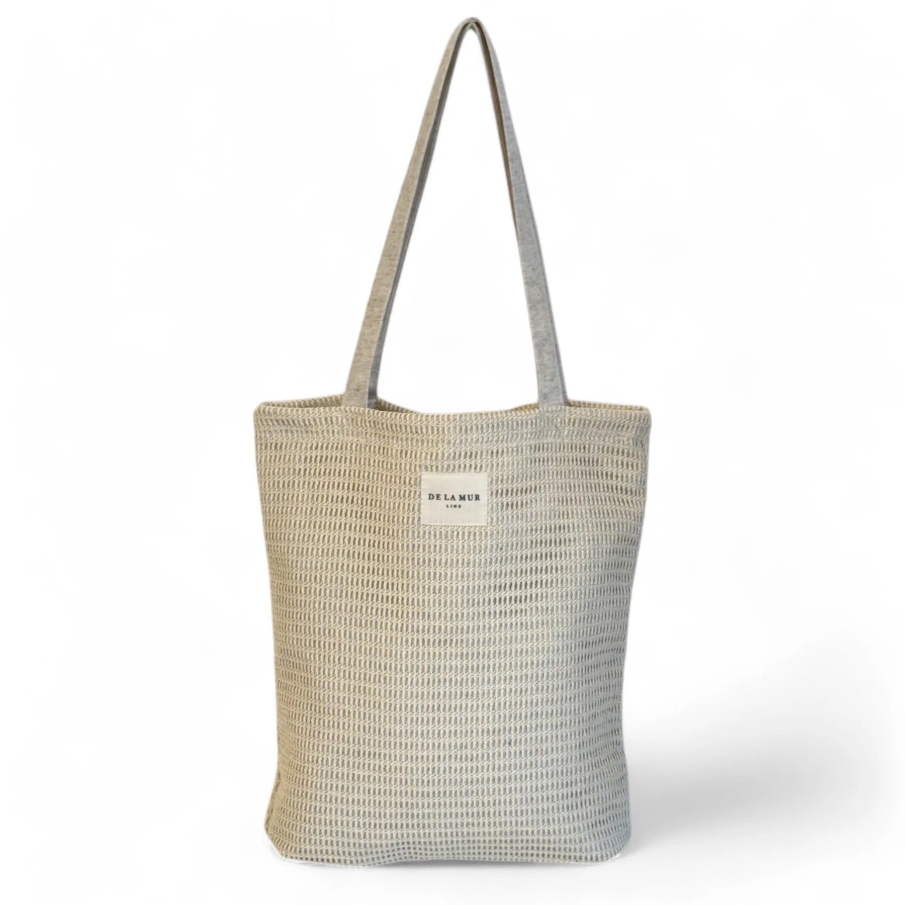 Bolsa "tote bag" con asas para llevar al hombro. Con tejido delicado de crochet. Forrado de tejido grueso de color crudo en la parte interior. Para su correcto mantenimiento se aconseja lavarlo en frío y no utilizar secadora.