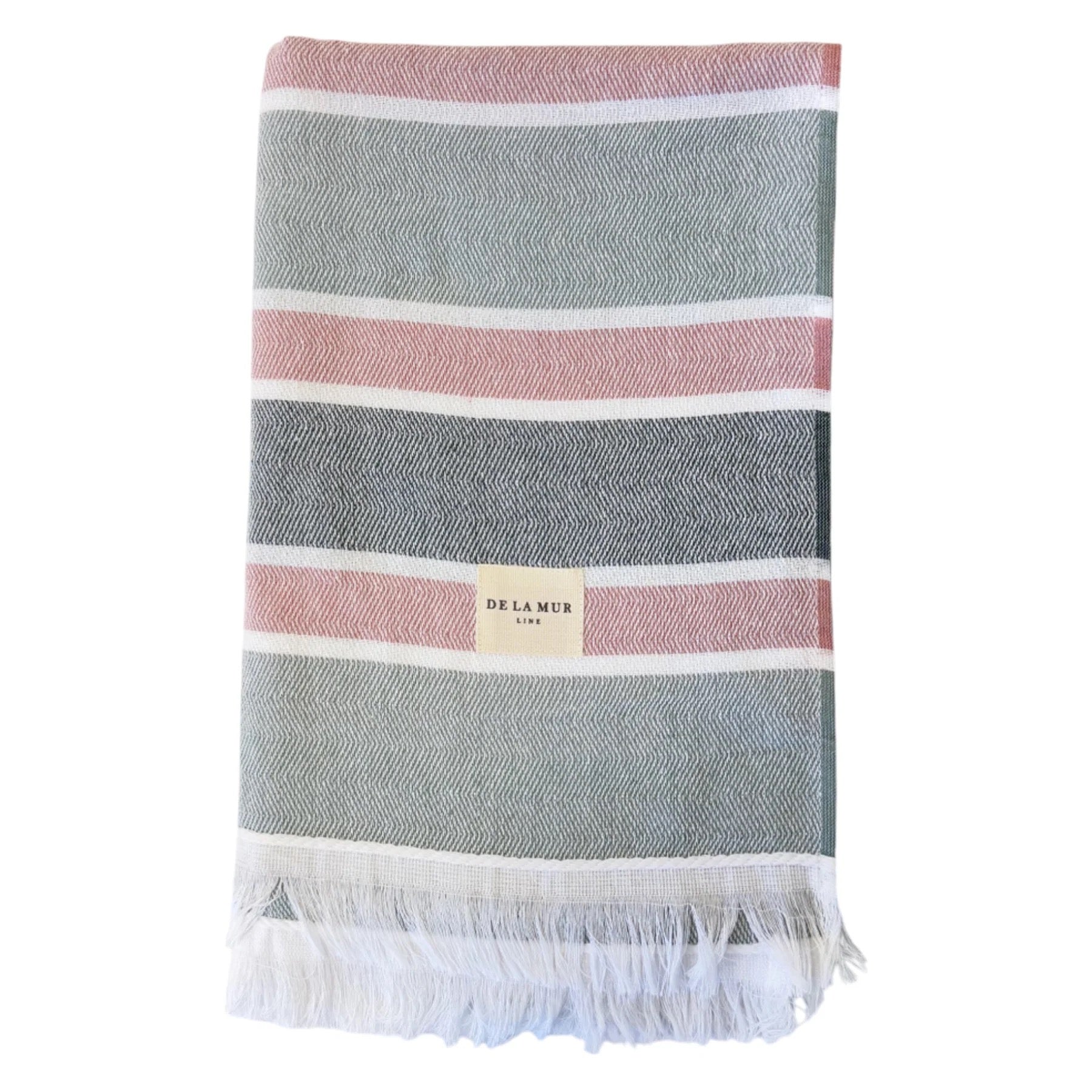 Toalla multiusos de tejido ligero con flecos en los laterales. Con estampado a rayas en tonos verdes y rojizos. Medida única. Para su correcto mantenimiento se aconseja lavarlo en frío y no utilizar secadora.