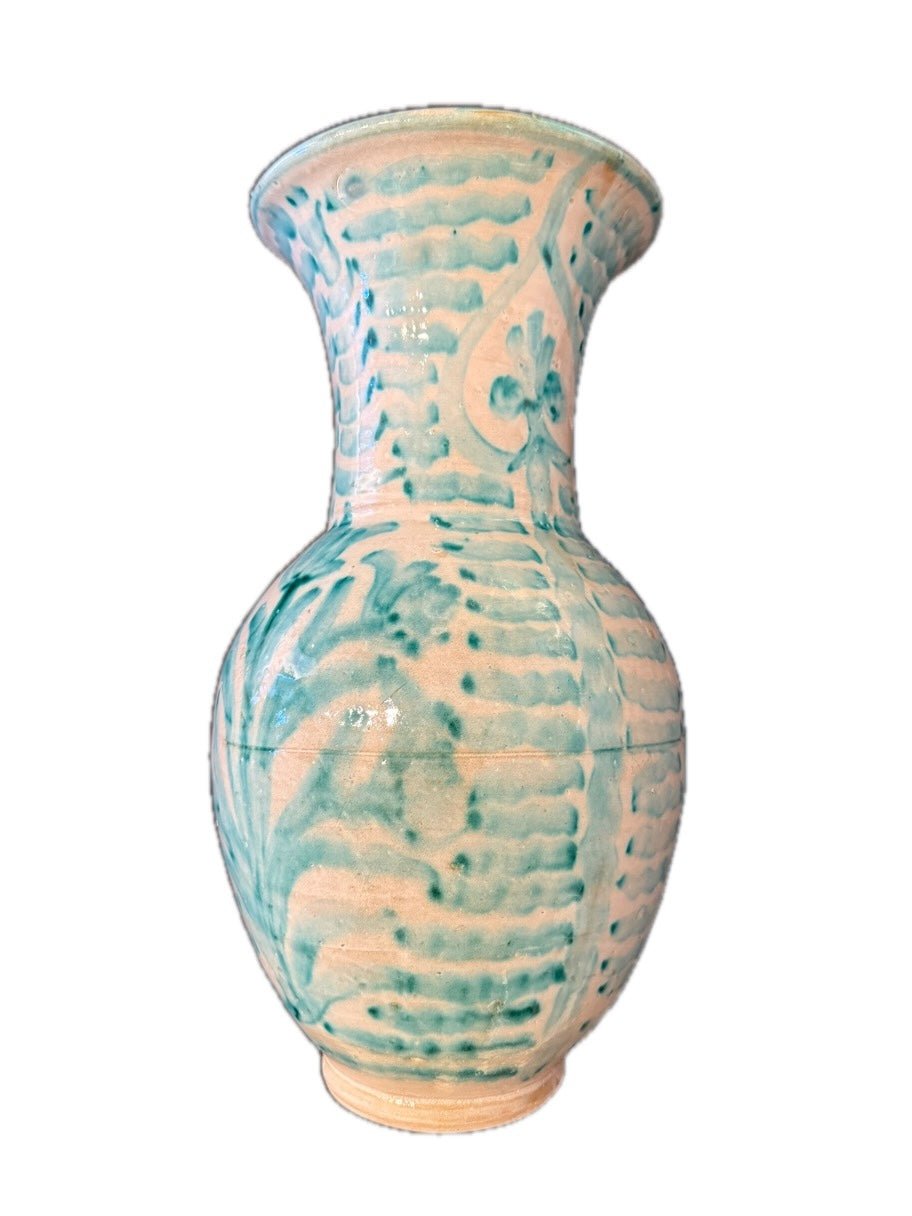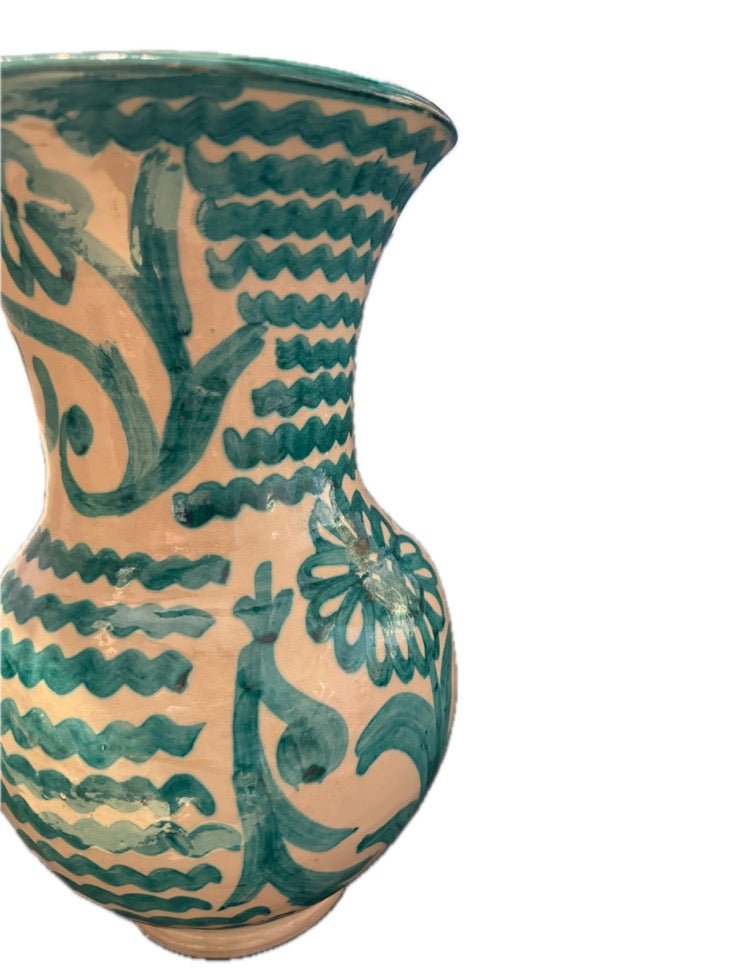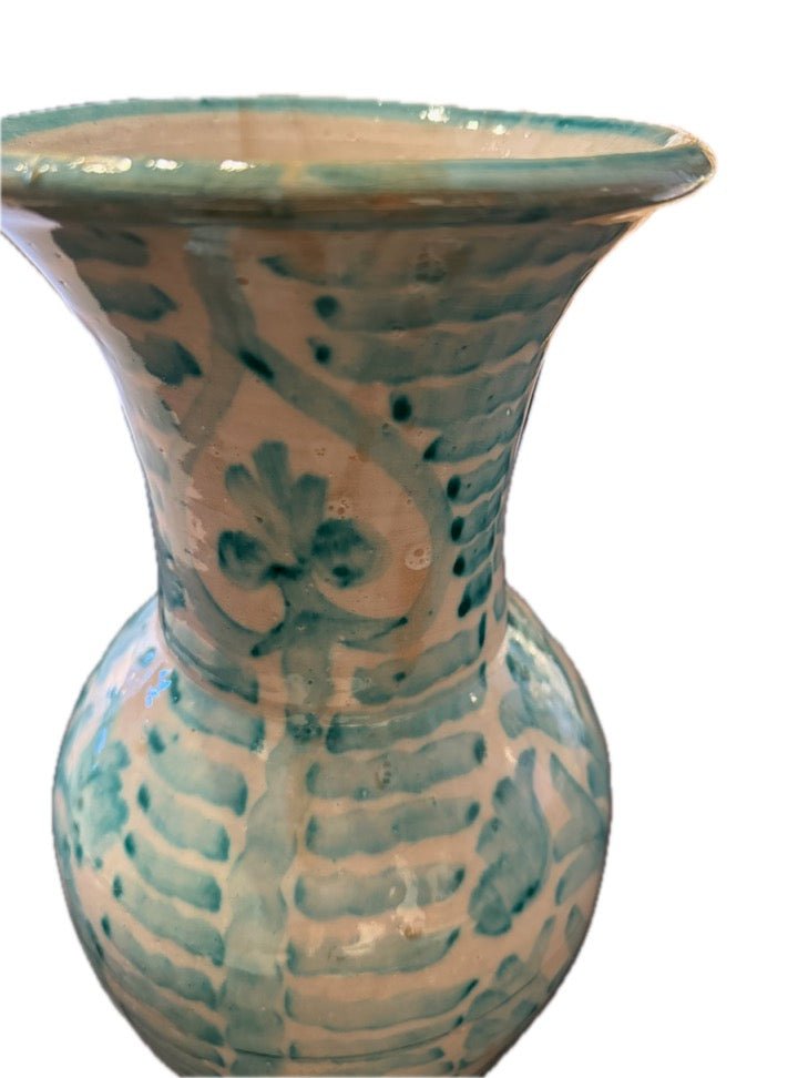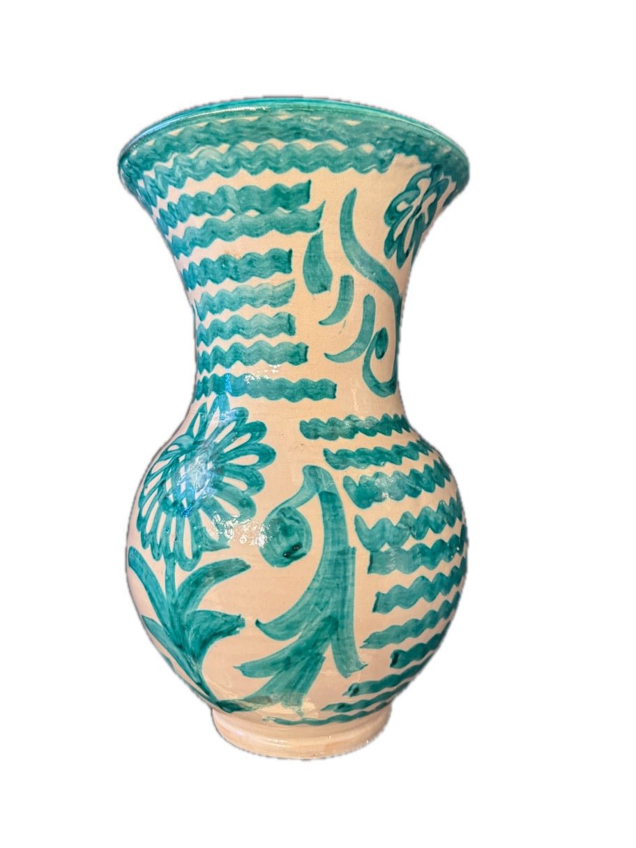 Maravilloso jarrón fabricado en cerámica de Fajalauza en color verde agua. Debido a su fabricación artesanal, es posible encontrar ligeras variaciones en el color, el tamaño o la forma, lo que lo convierte en una pieza única y con encanto. Disponible en dos medidas diferentes.
