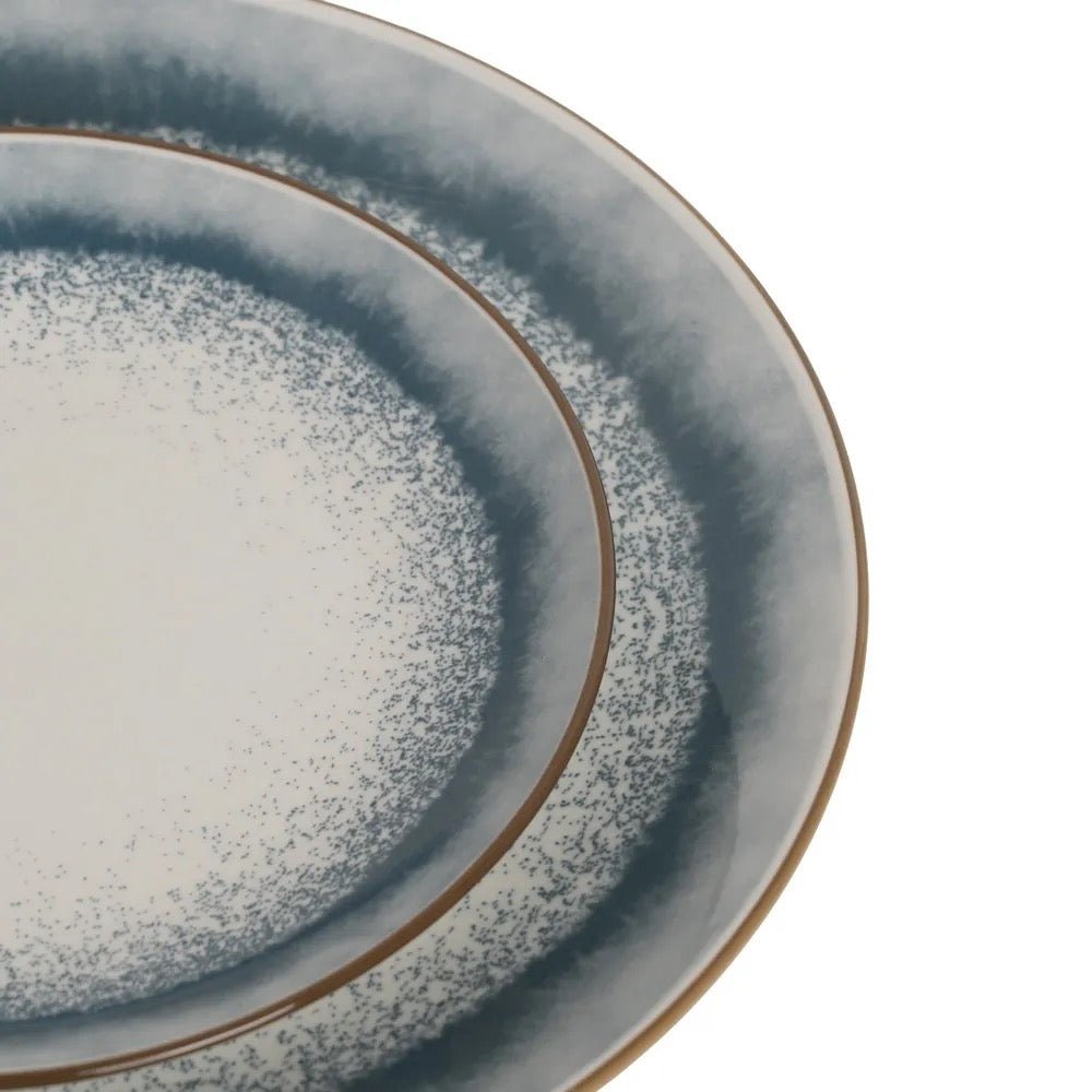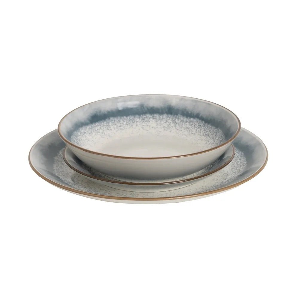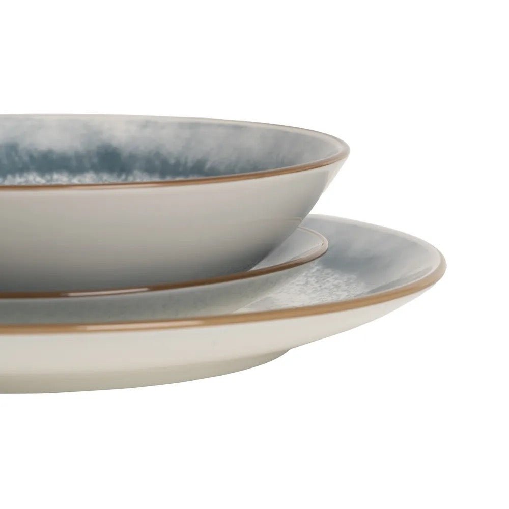 Vajilla completa de 18 piezas fabricada en porcelana en color azul y crema.