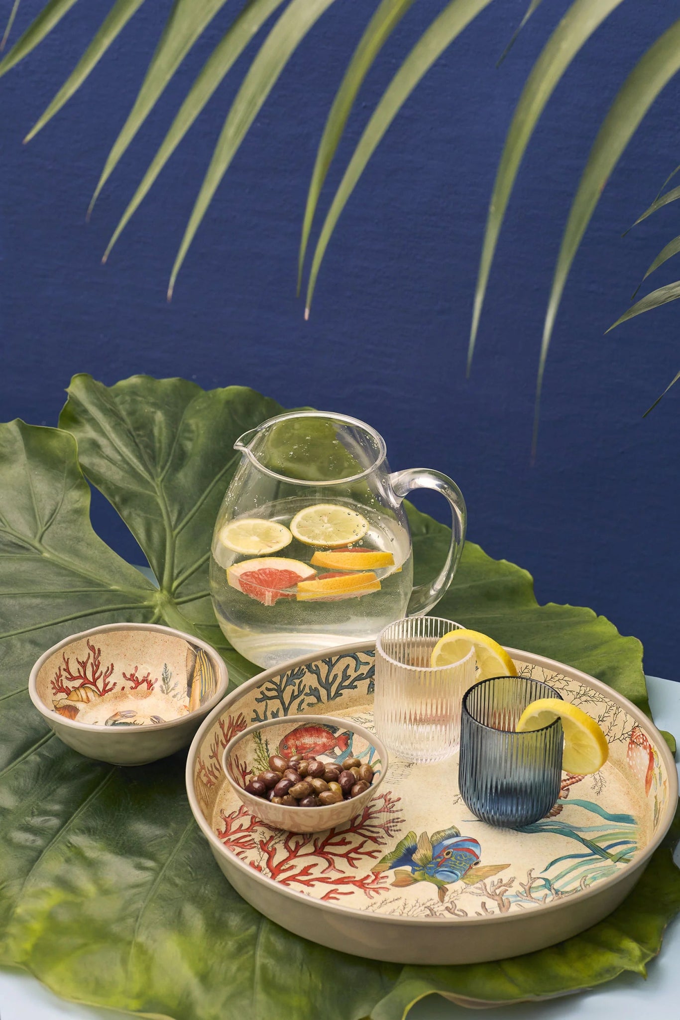 Preciosa vajilla fabricada en melamina, un material resistente, ligero, muy higiénico y de fácil mantenimiento. Con su superficie brillante y duradera, los juegos de platos son hermosos para llevar a la mesa, con sus variaciones temáticas, desde el mundo marino hasta los coloridos elementos de la naturaleza, y para combinar con divertidos manteles individuales y accesorios de mesa temáticos.