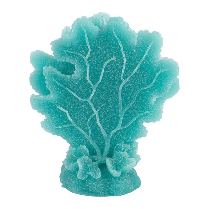 Preciosa vela con forma de coral fabricada en cera de parafina color turquesa.
