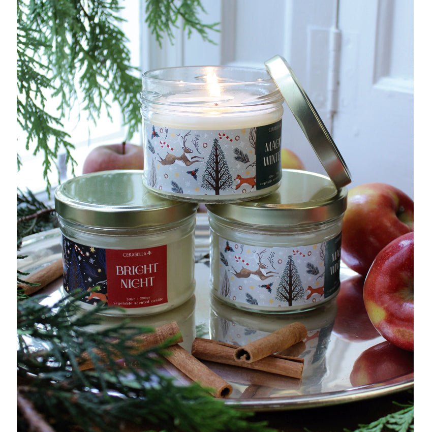 Esta velas perfumadas son una colección de velas navideñas perfumadas. Disponibles en tarro de vidrio con tapa dorada, con perfumes càlidos y acogedores que nos evocarán los recuerdos más entrañables de estas fiestas.