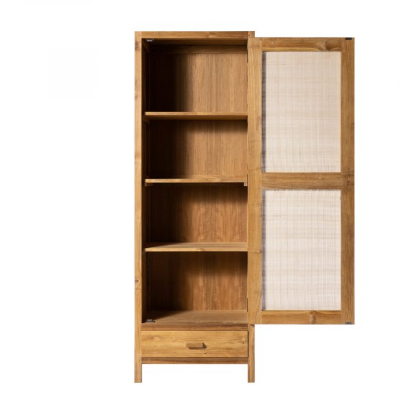 Vitrina Frama fabricada en madera de teca y ratán en color natural.
