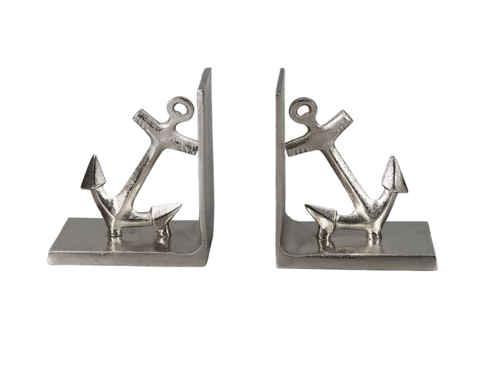 Beautiful bookend made of silver aluminum with an original anchor design divided into two units. The price is for the set of two.