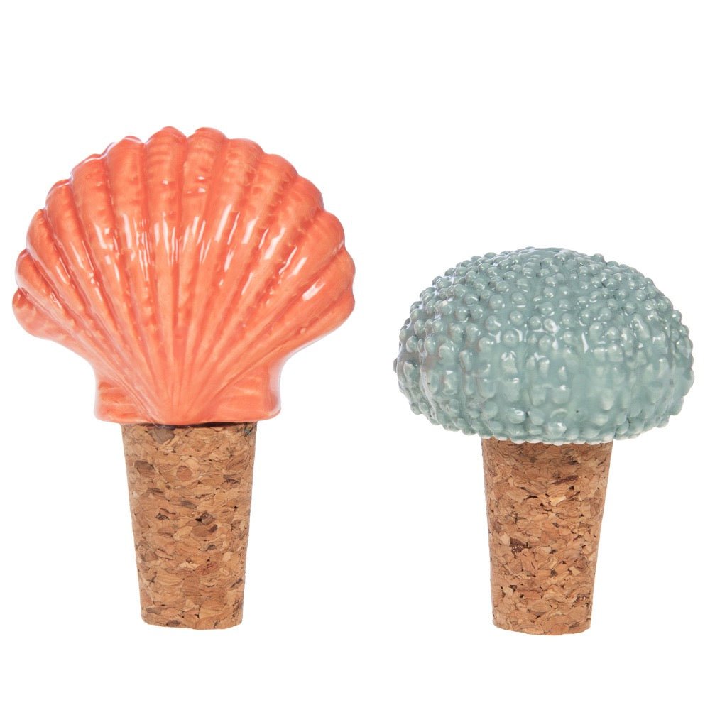 Decorative ceramic and cork stoppers inspired by the beauty of the sea. Their shapes, reminiscent of a delicate shell and a sea urchin, add a coastal and artisanal touch to your bottles, combining functionality and natural charm.
