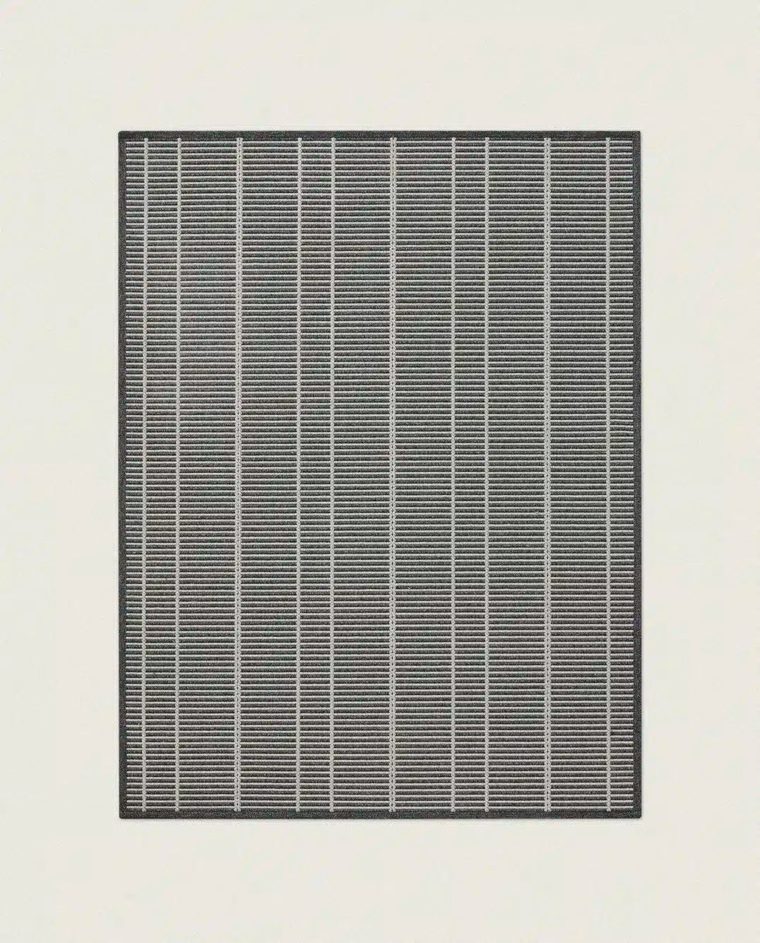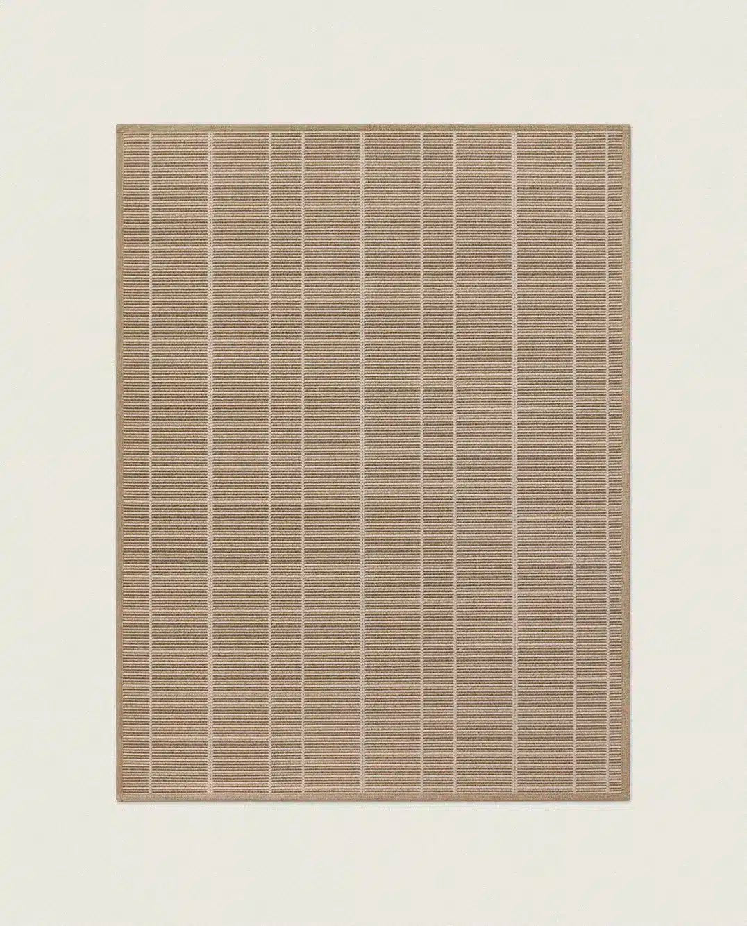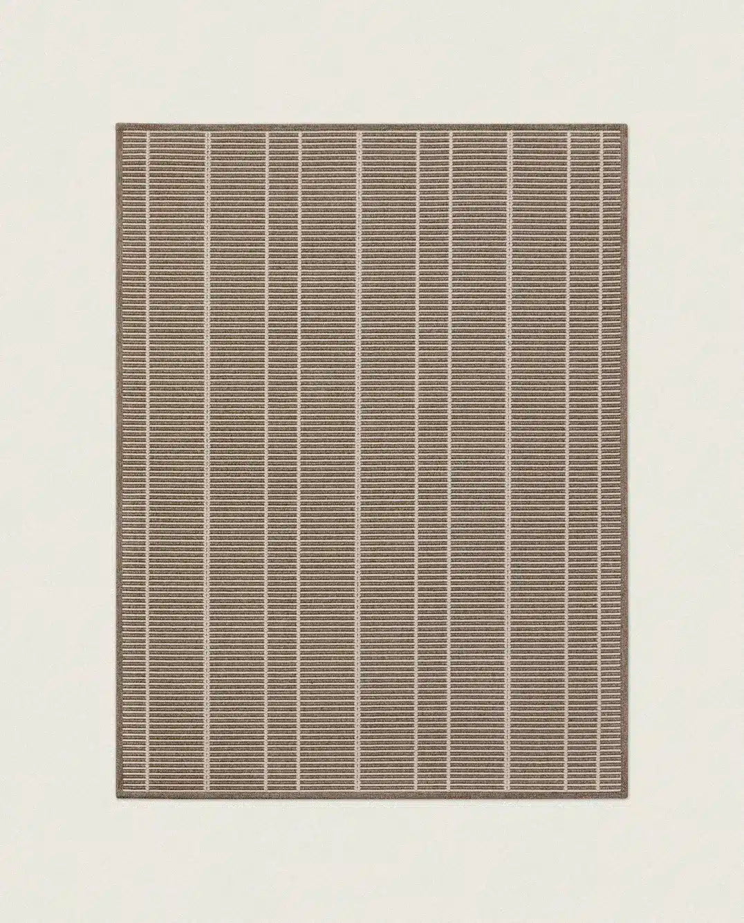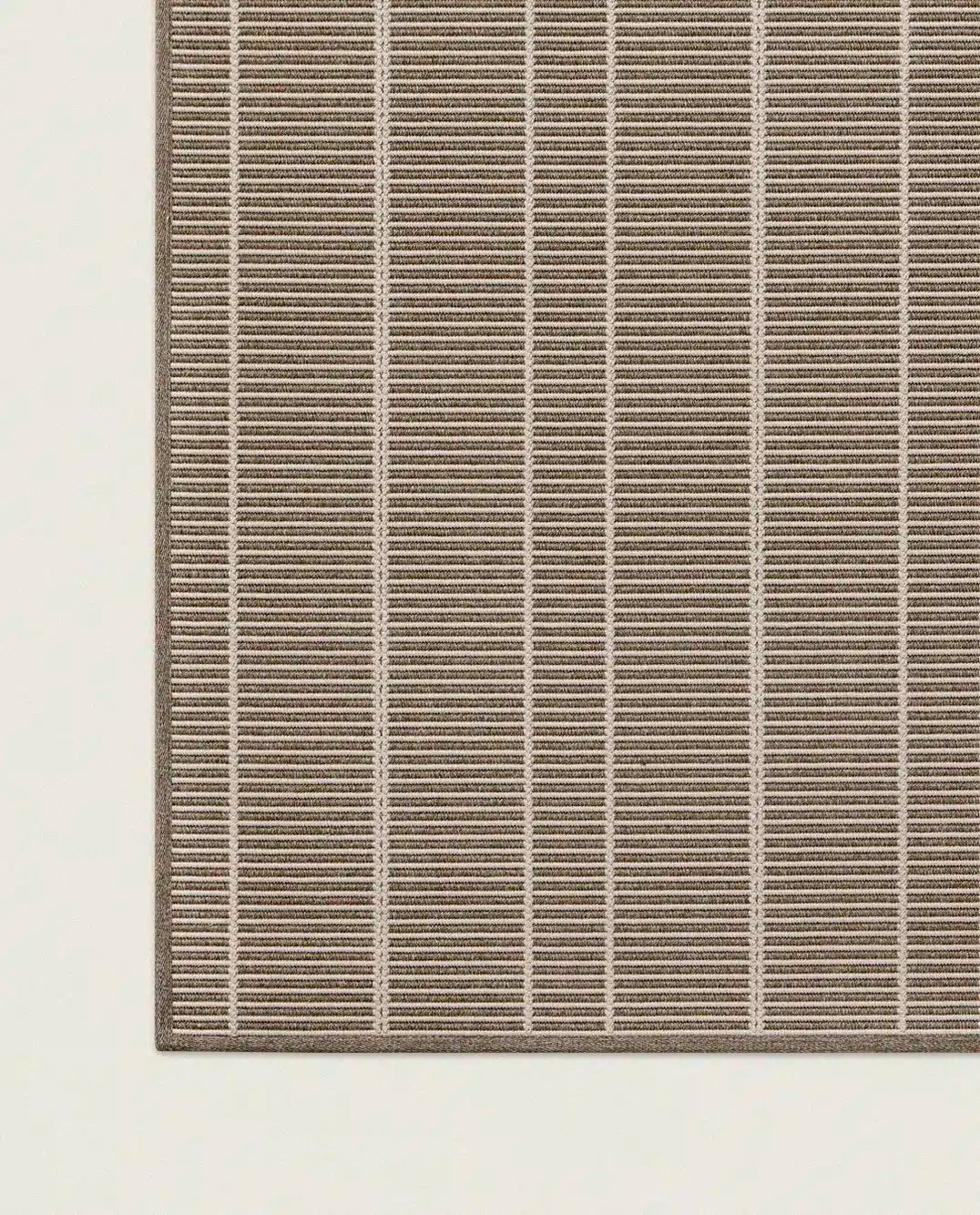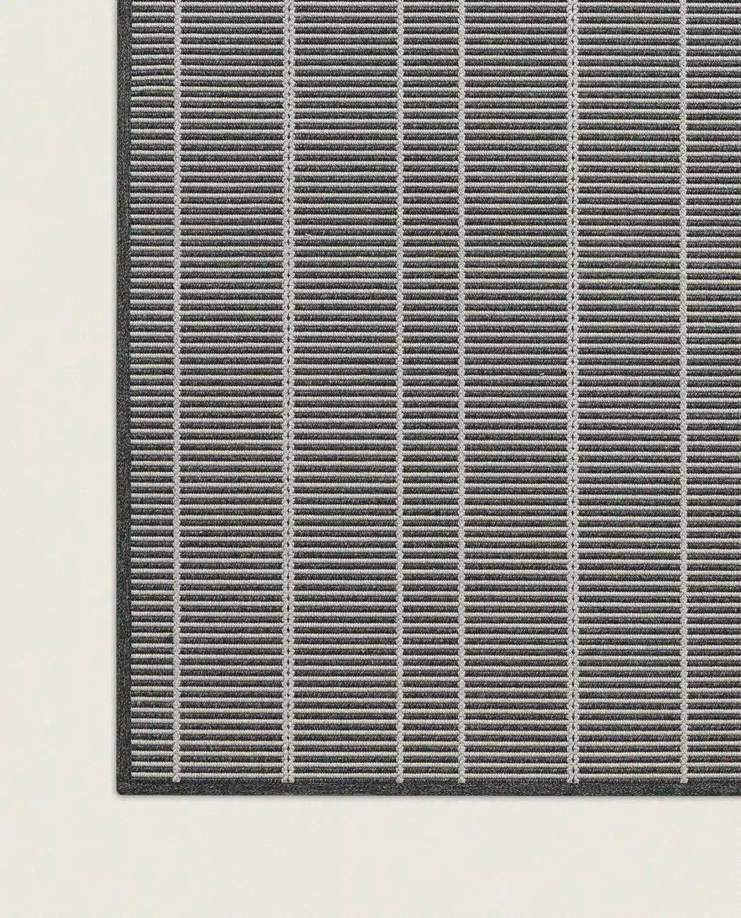 Wonderful rectangular rug suitable for indoor and outdoor use, made on a flat weave loom and with a UV treatment incorporated into the fibres that allows its use indoors and outdoors with colour fastness to light. Suitable for use with underfloor heating.