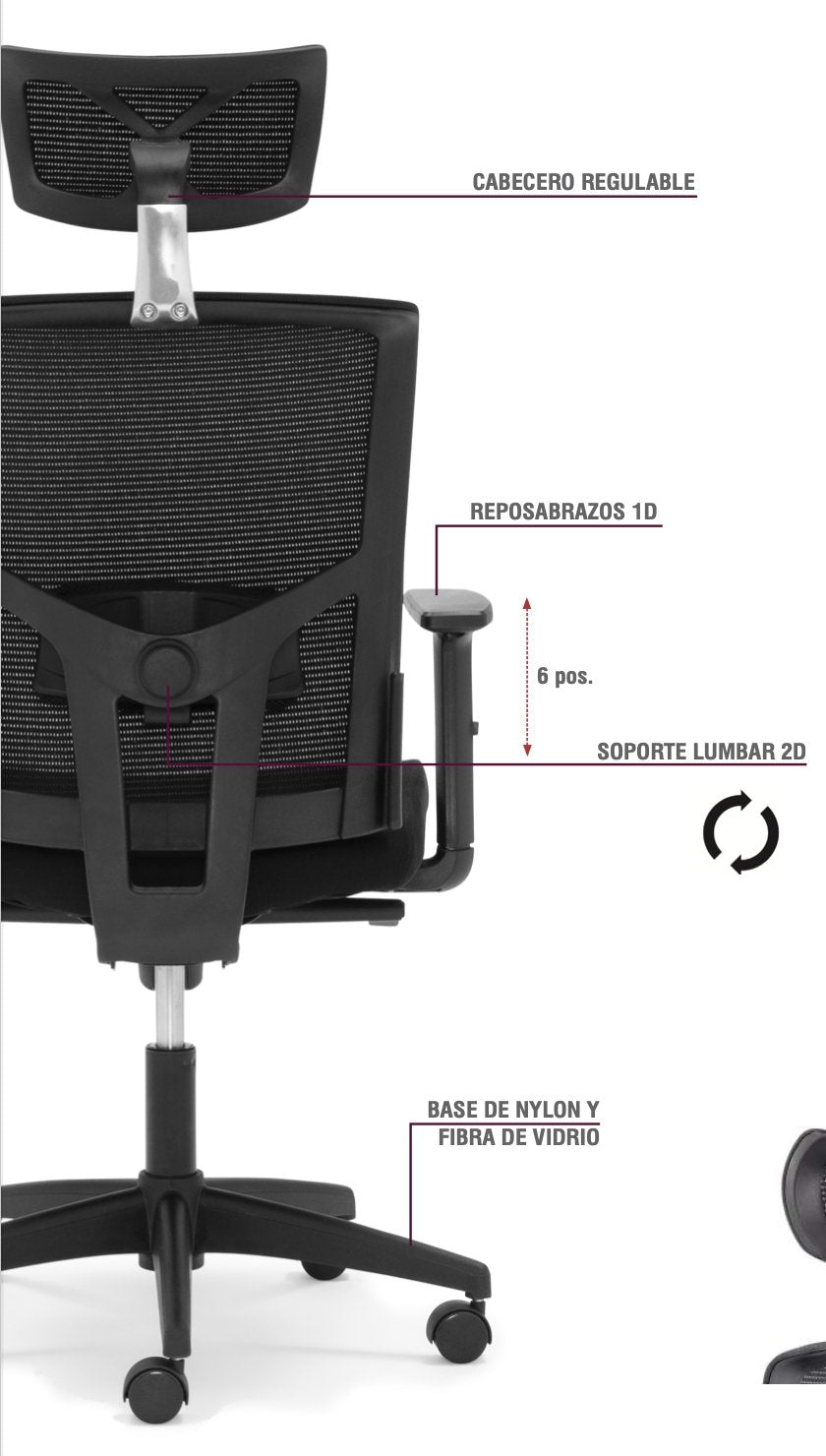 - High-resistance technical mesh backrest “fabric effect”.