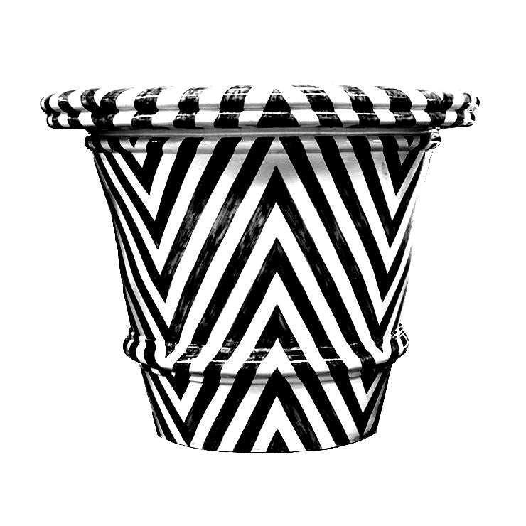 Beautiful contemporary ceramic pot, pressed and hand painted with geometric motifs.