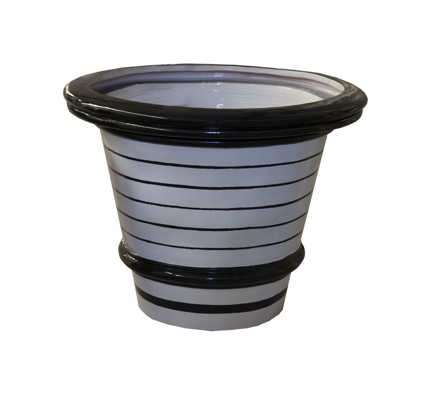 Beautiful contemporary ceramic pot, pressed and hand painted with geometric motifs.
