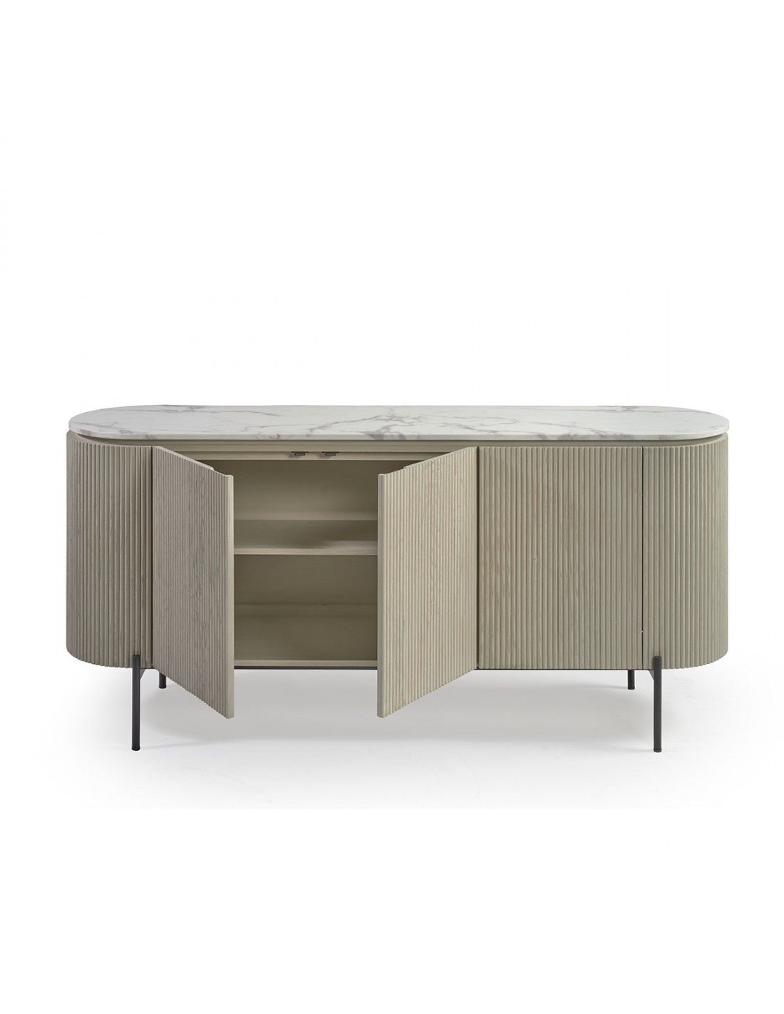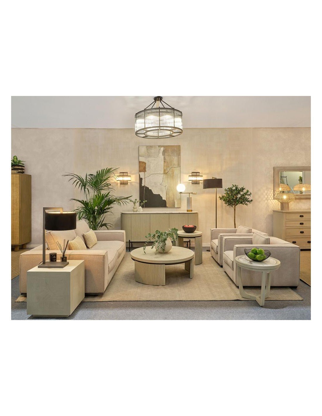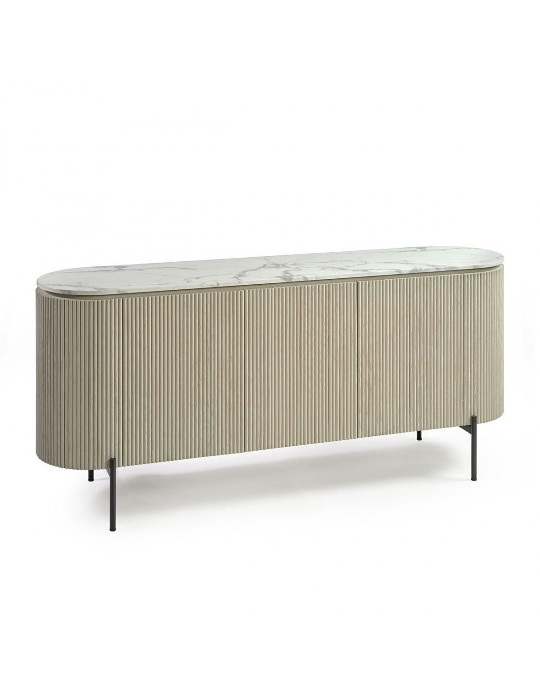Recycled pine and glass sideboard. Ideal for any place in your home, especially for the living room. It is made up of 10 drawers and 4 glass drawers. Perfect for organizing and storing whatever you want. The interior of this wonderful sideboard breaks with tradition, giving it a touch of modernity thanks to the interior of its drawers and transmitting elegance, refinement and ease of combination. In addition, it has different sizes of bronze-colored brass handles, which enhance the natural style of the furniture.