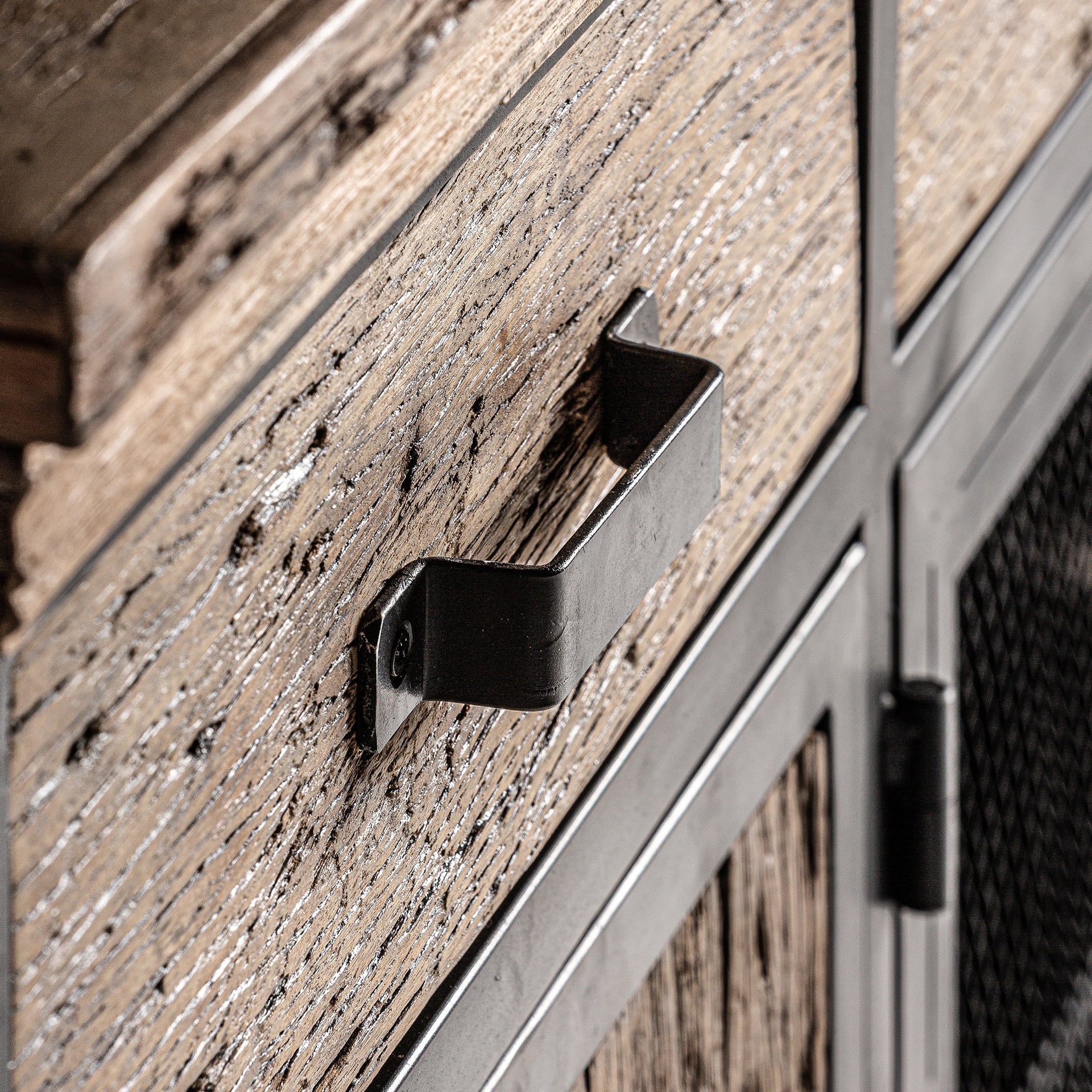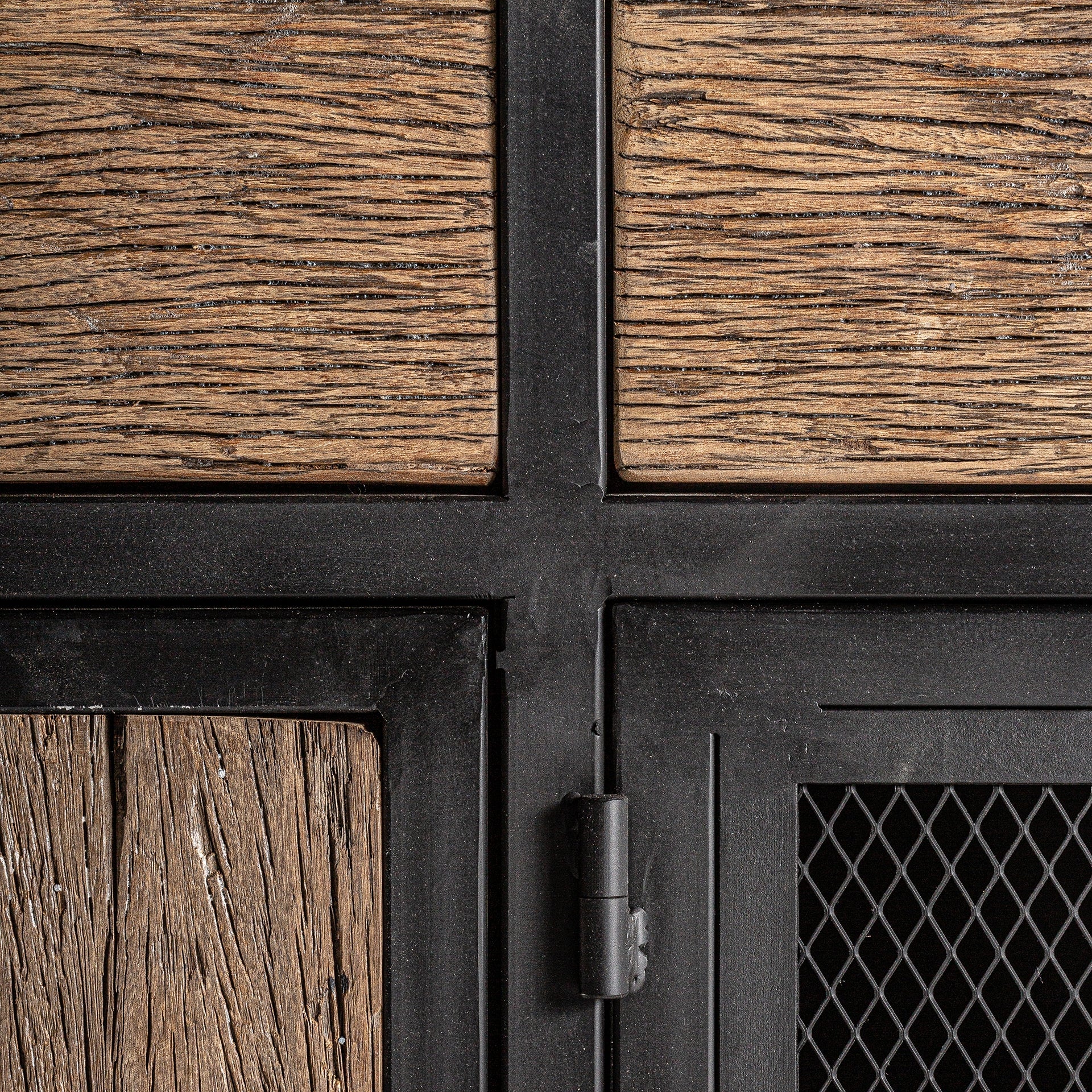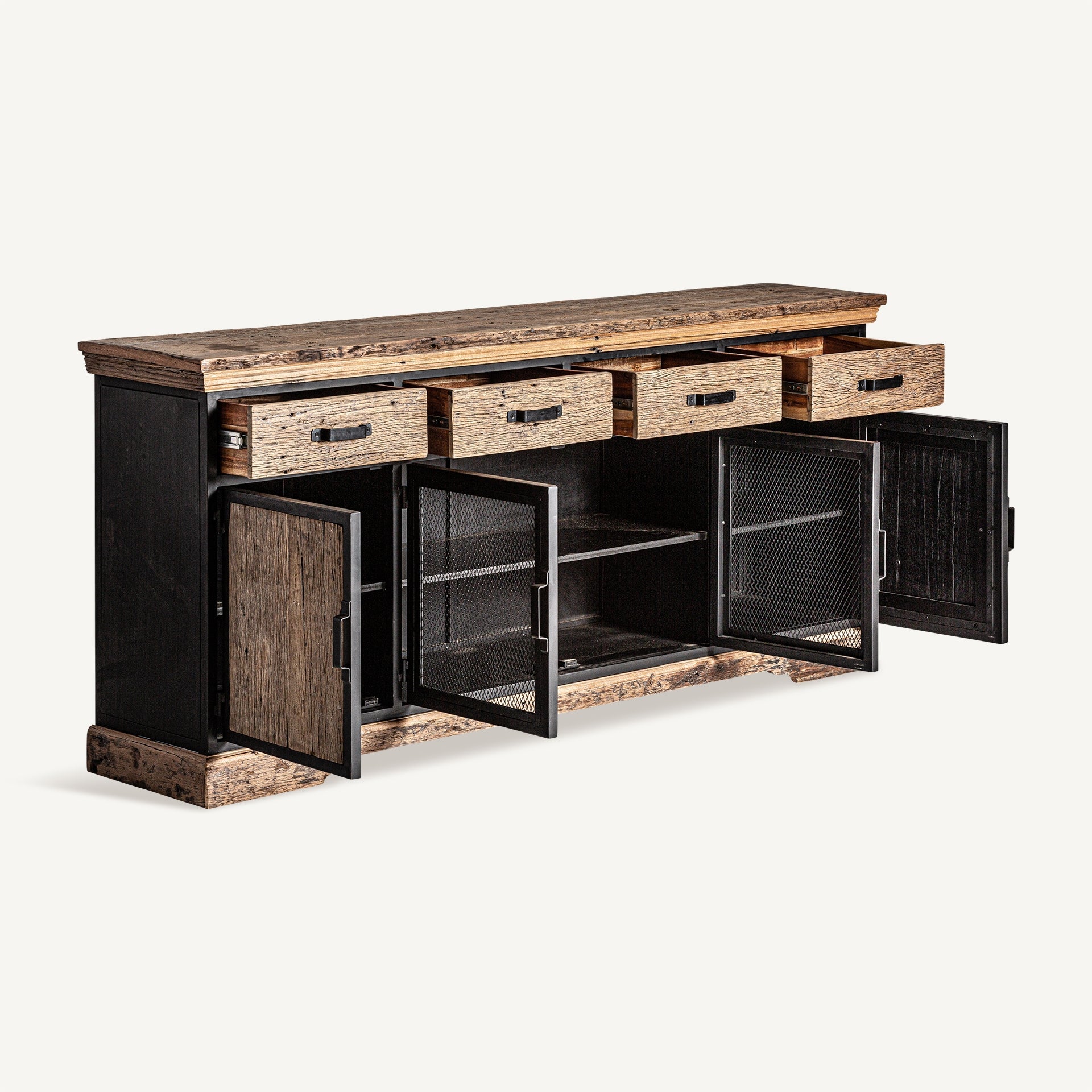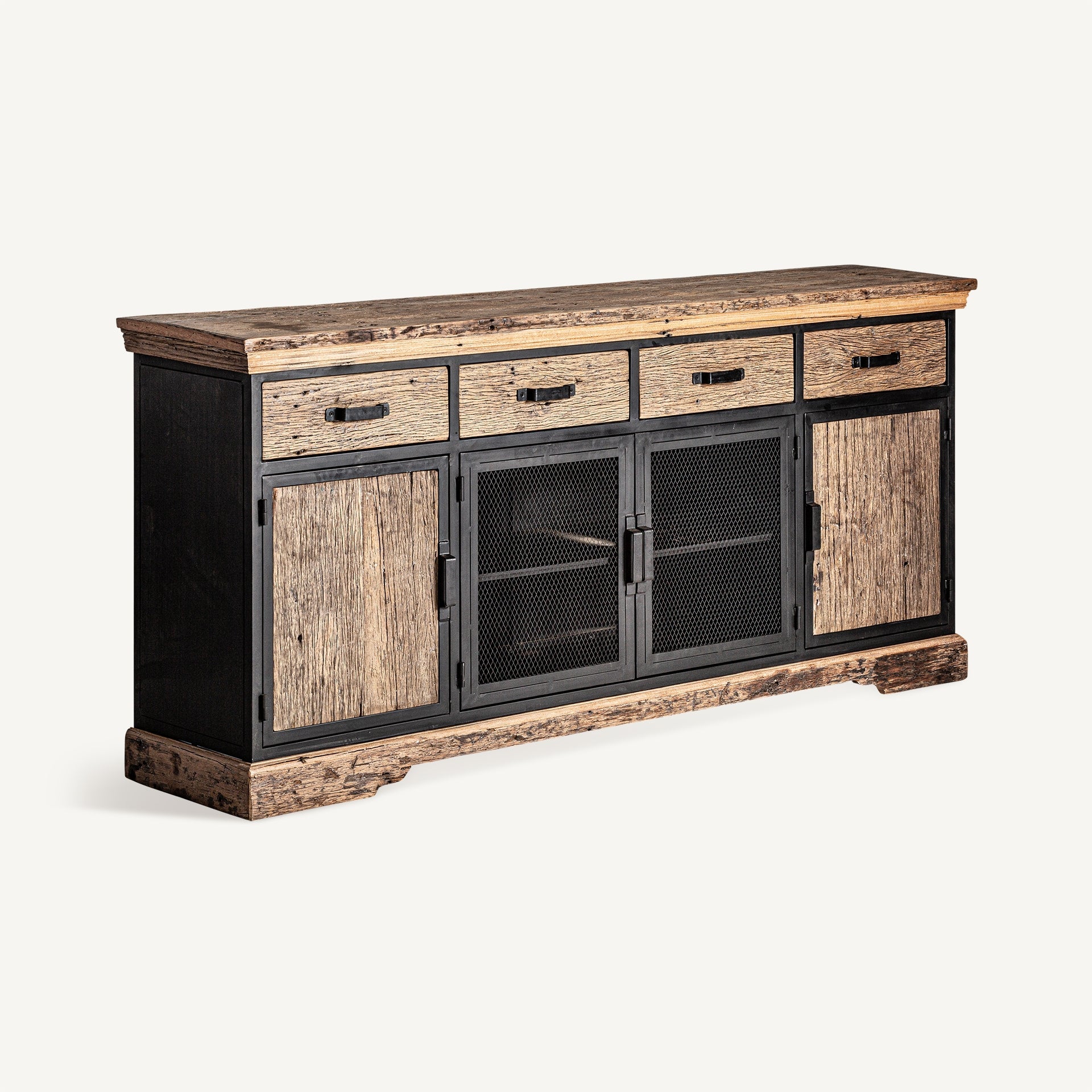 Sideboard that c Combine black iron with natural reclaimed wood in a handcrafted design, the sturdy iron provides a durable and modern frame, while the wood adds a rustic and warm touch.