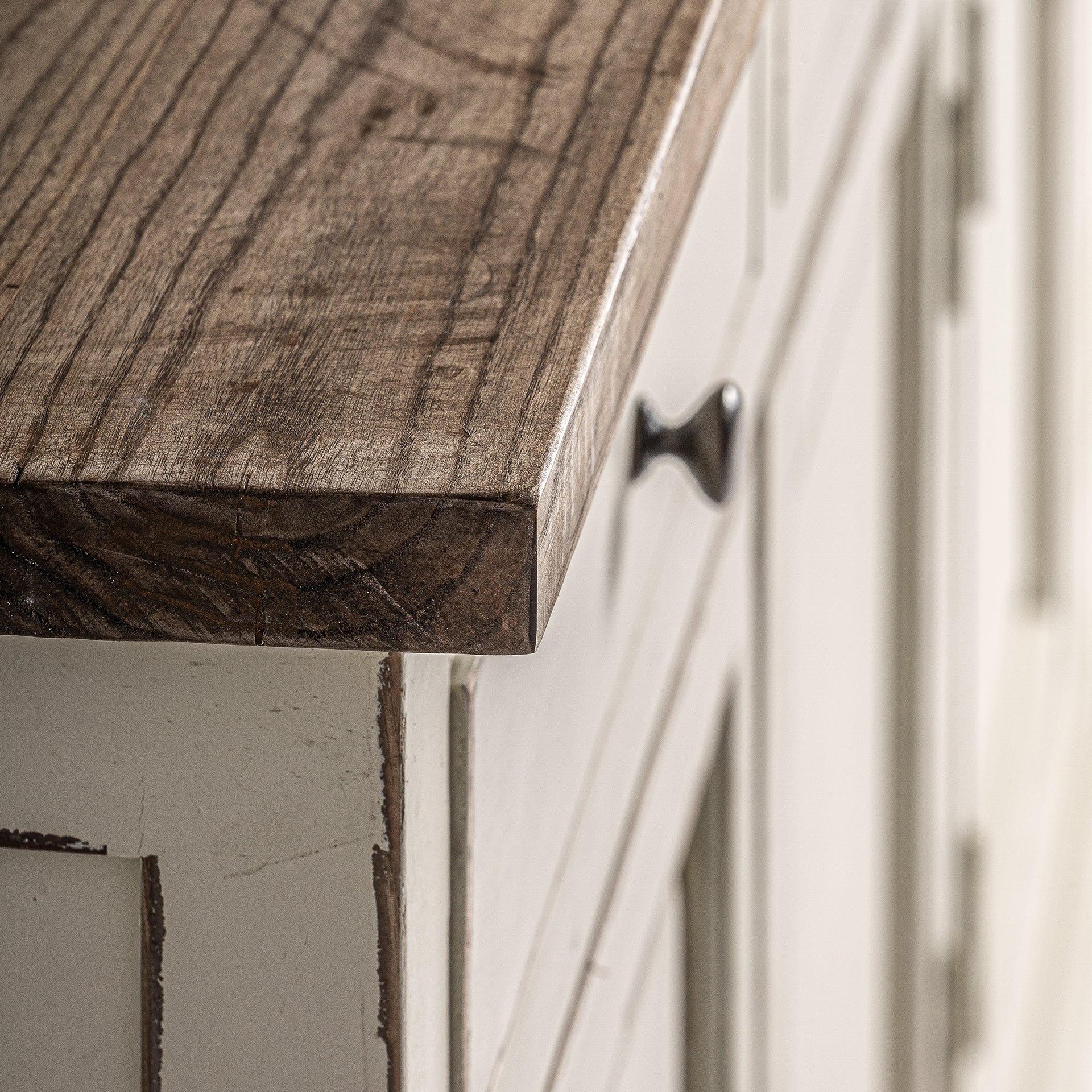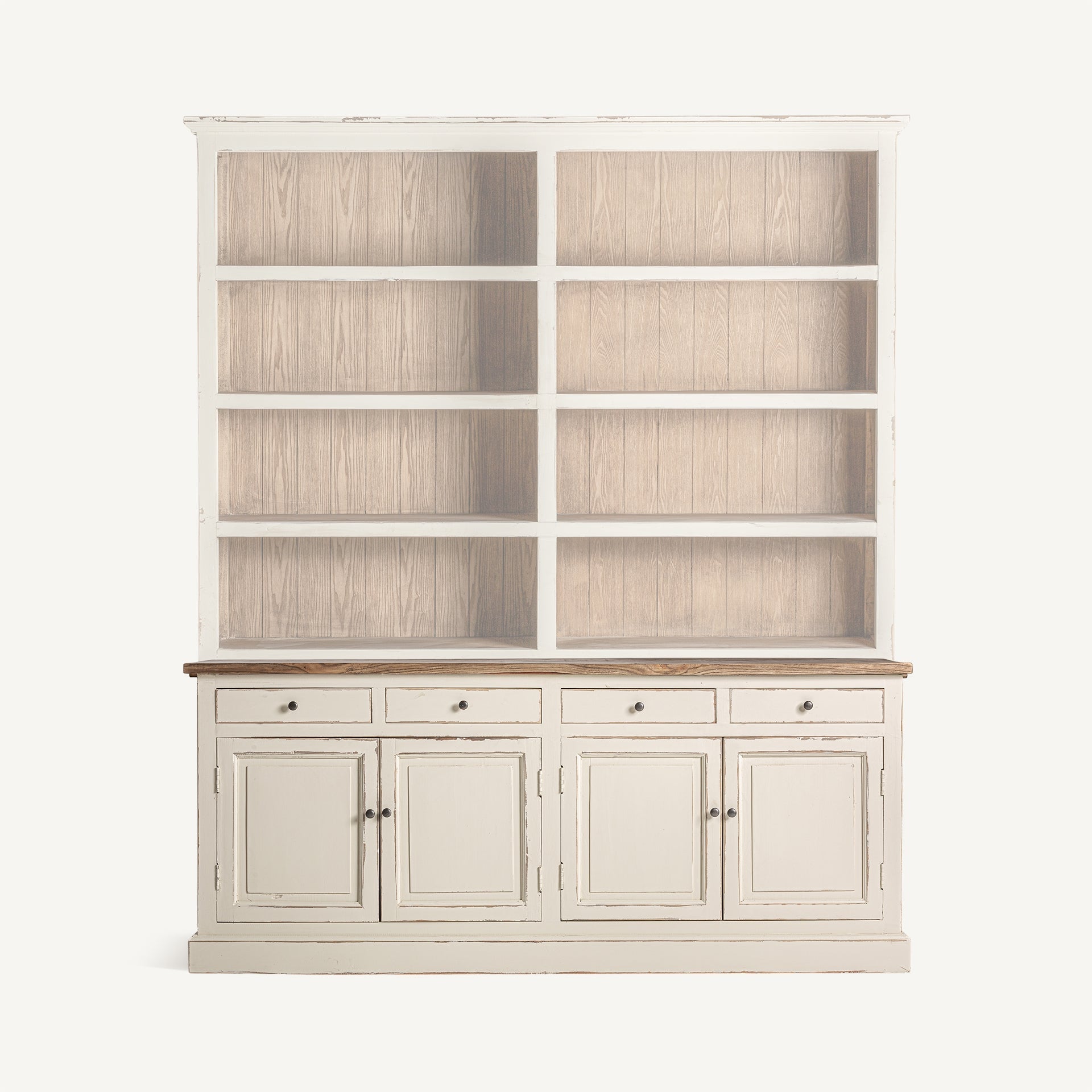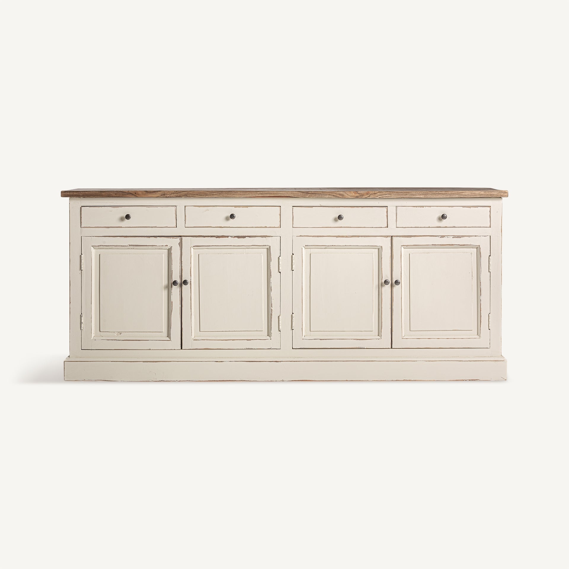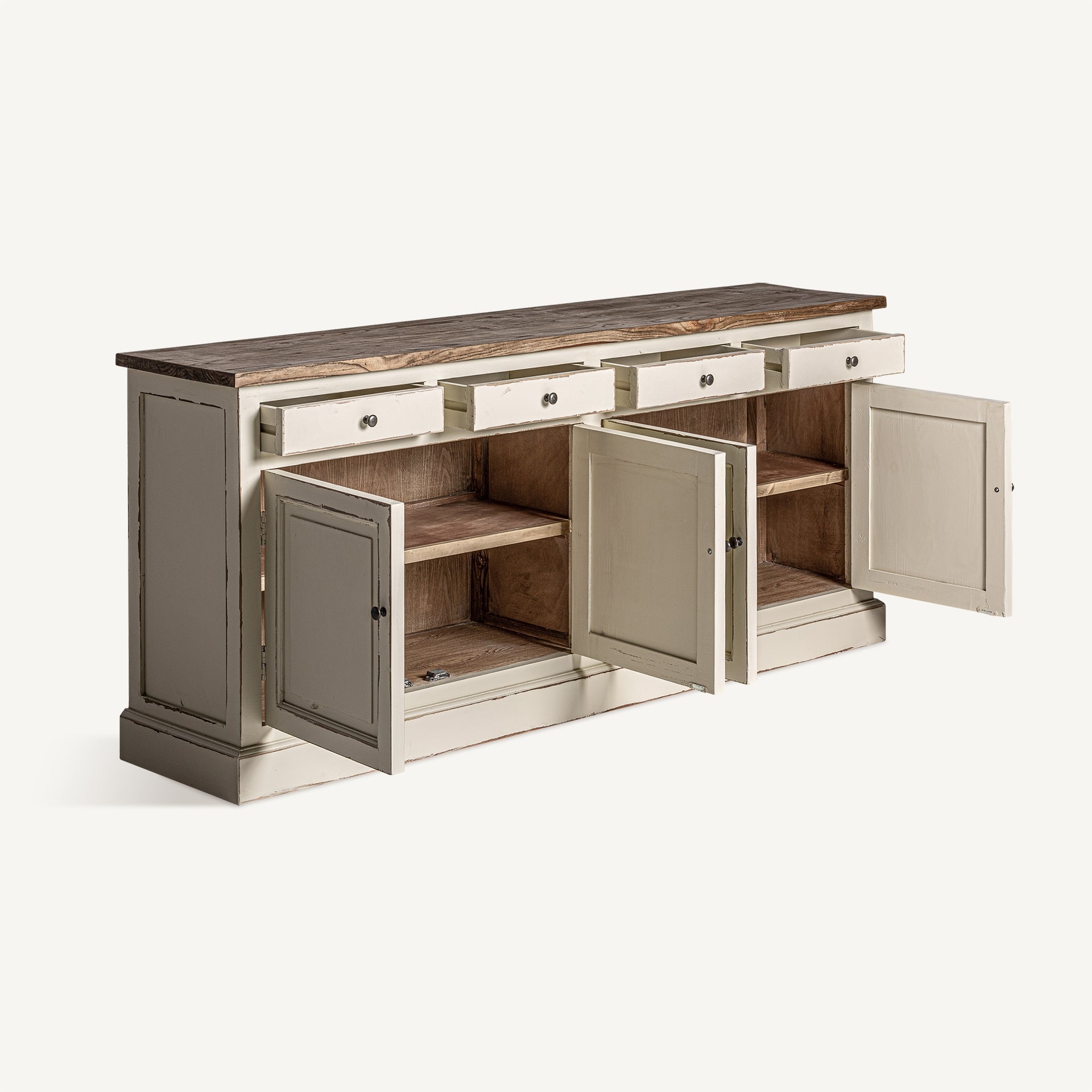 Sideboard made of elm wood, its off-white finish harmonizes with any style of decoration. Ideal for living rooms and dining rooms that seek functionality and elegance.