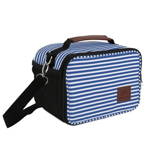 Insulated bag made of durable polyester, designed in elegant white and blue tones. Ideal for keeping your food and drinks fresher for longer, perfect for everyday use, picnics, or travel. Its modern, soft finish combines functionality and style, with a secure closure that retains temperature and a compact size for easy transport.