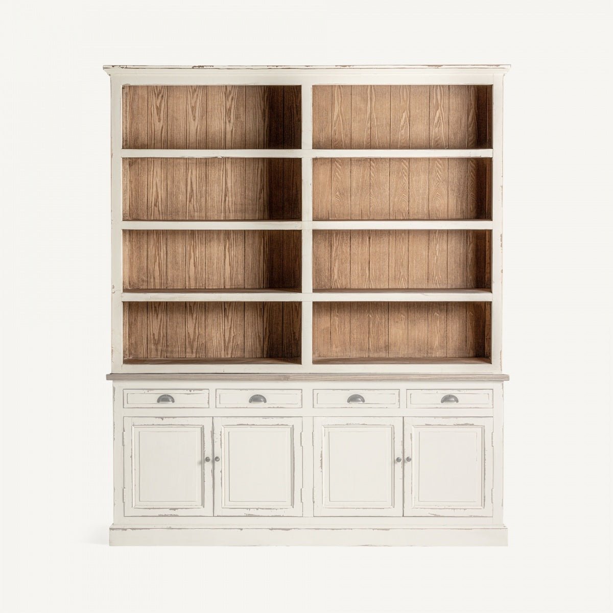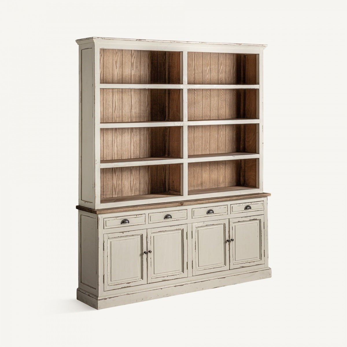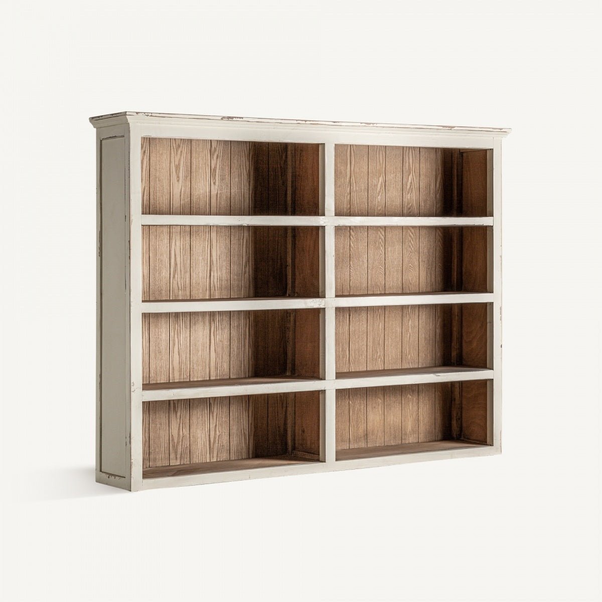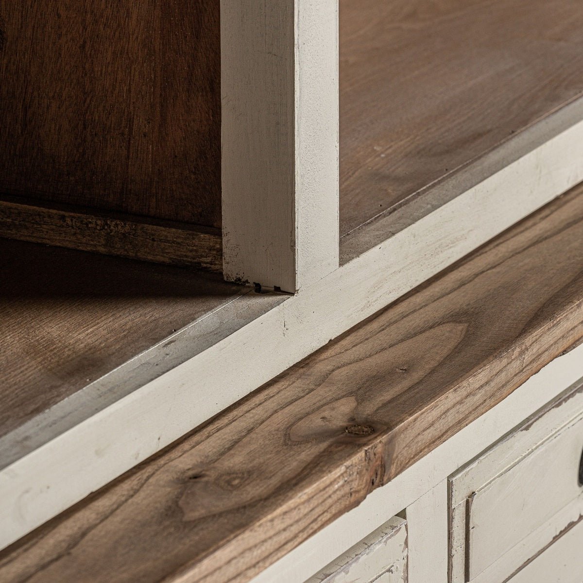 Chest of drawers made of patinated white oak wood. It has 3 drawers and a structure suspended from the floor with wooden legs. It can be used as a nightstand.